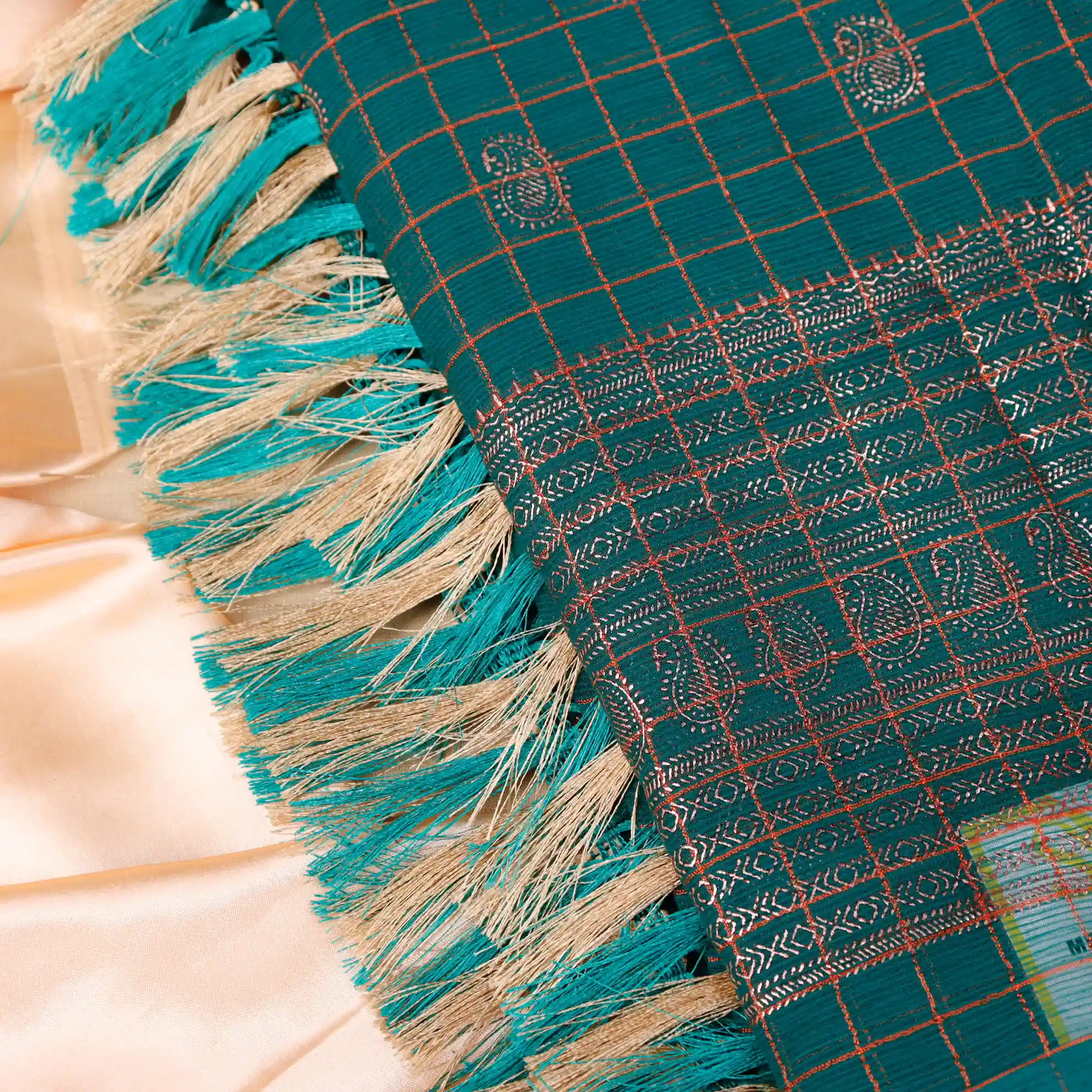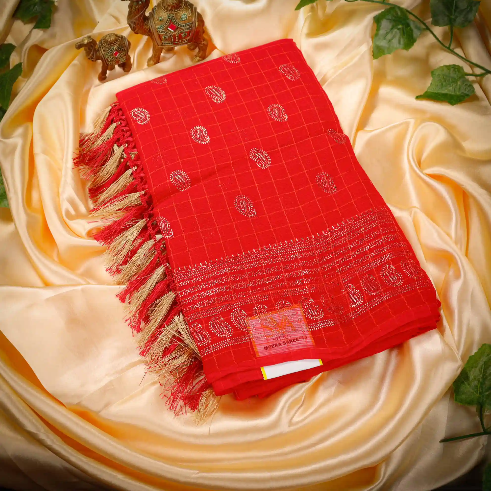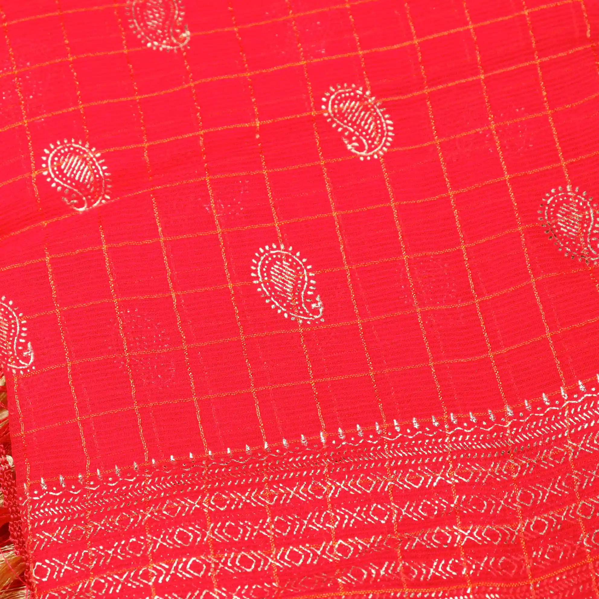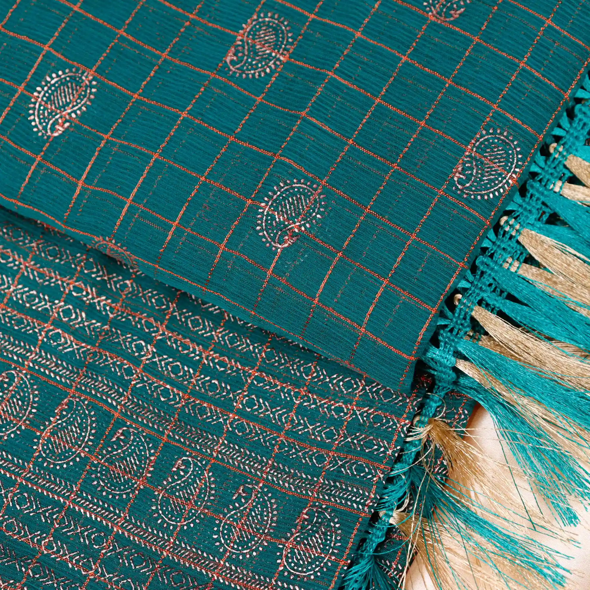 Checked Foil Print Georgette Saree with Tassel Knot