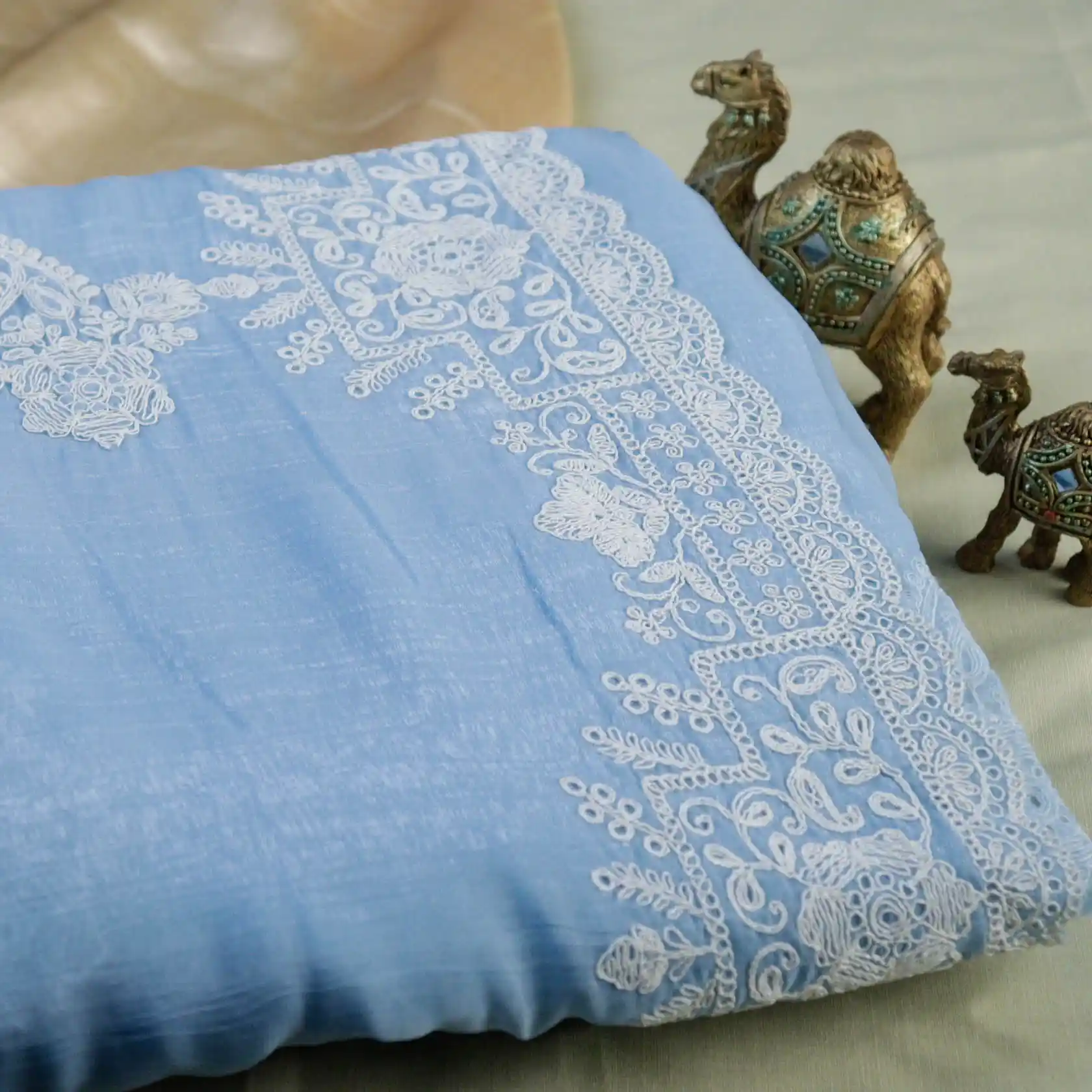 Elevate Your Ethnic Style With This Elegant Crush Embroidery Organza Saree, Crafted From Lightweight Crush Organza Fabric With a Graceful Drape and Subtle Sheen. The Saree Features Delicate Floral Embroidery With Intricate Thread Work Along the Borders and Pallu, Adding a Refined Feminine Charm.