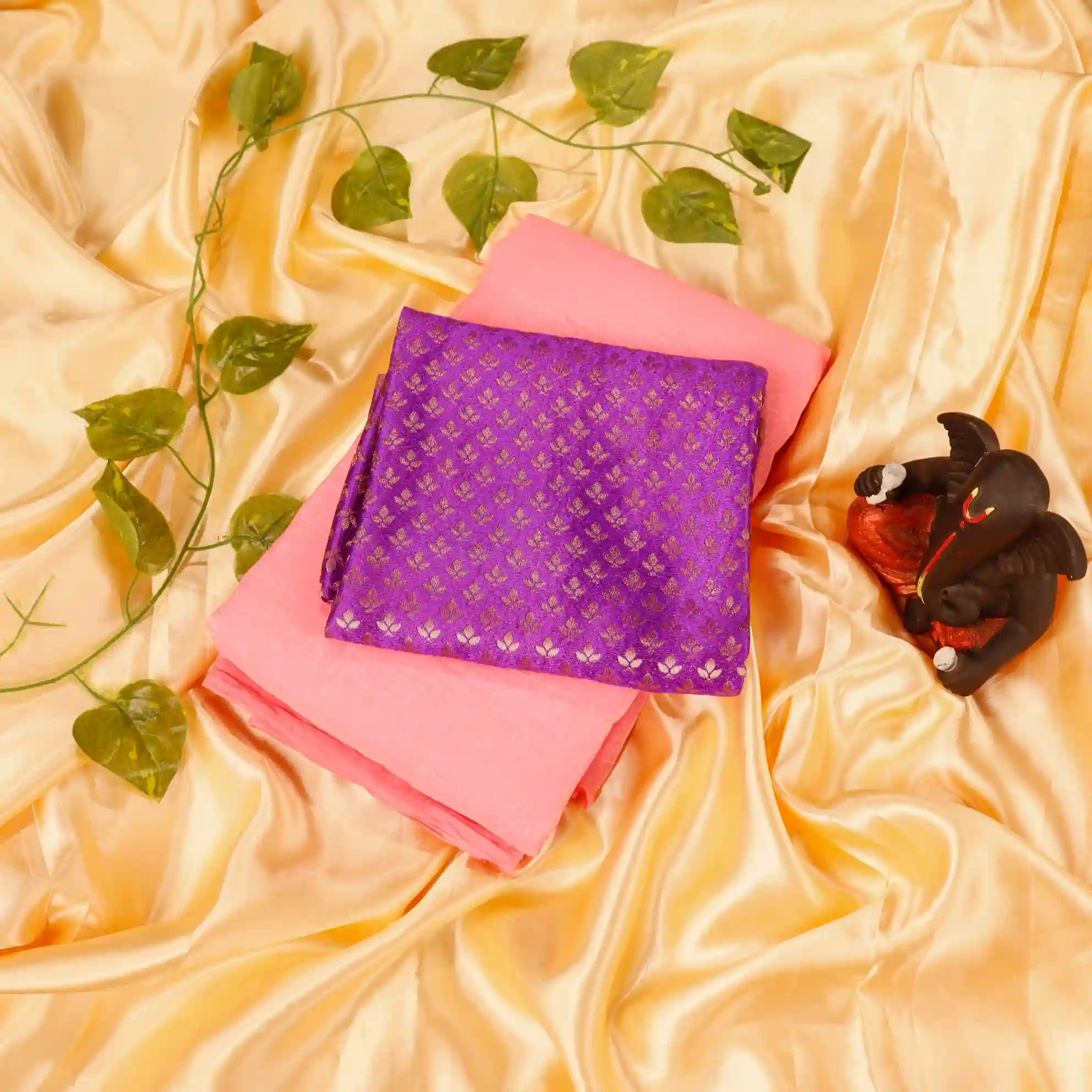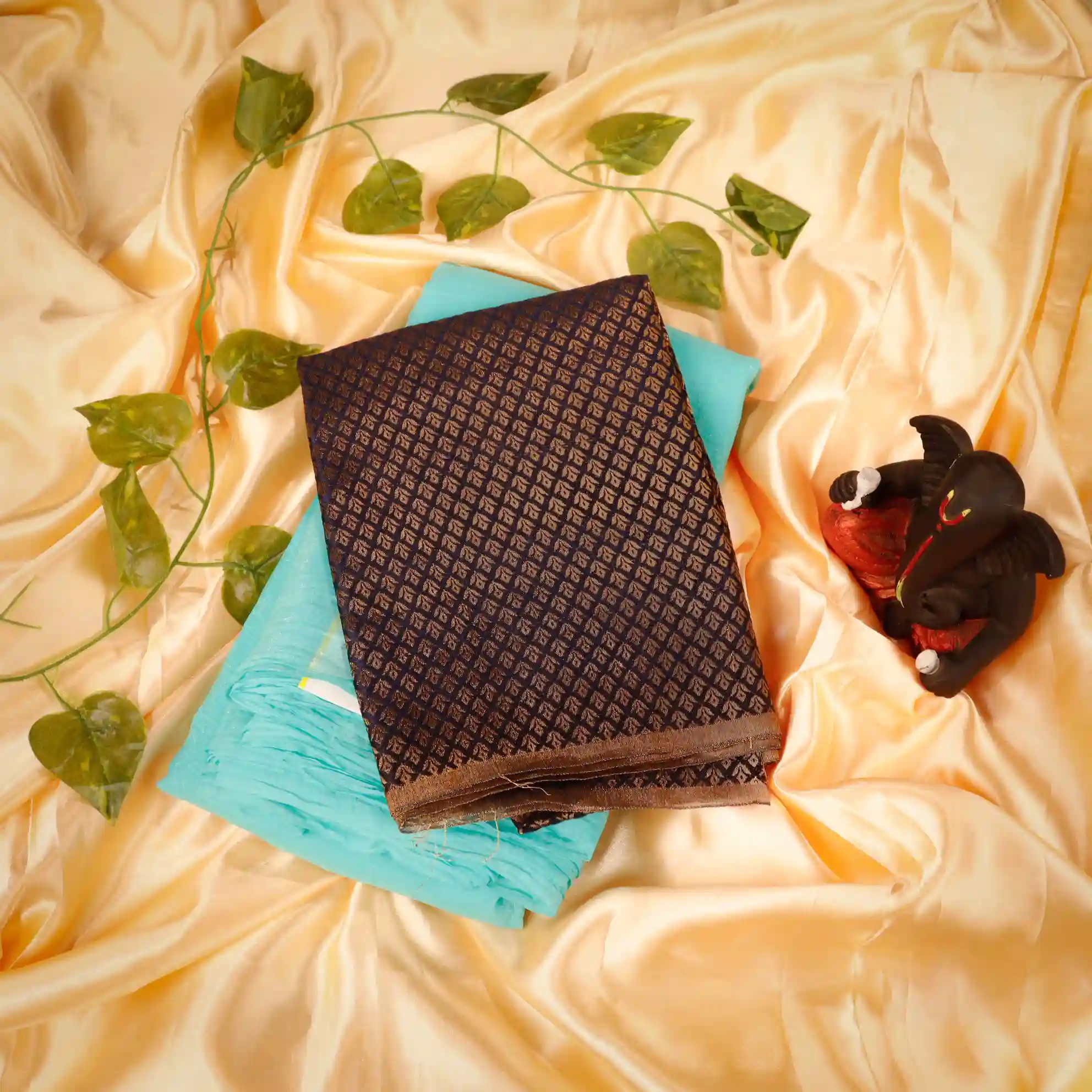 Crush Georgette Plain Saree with Contrast Jacquard or Cotton Blouse