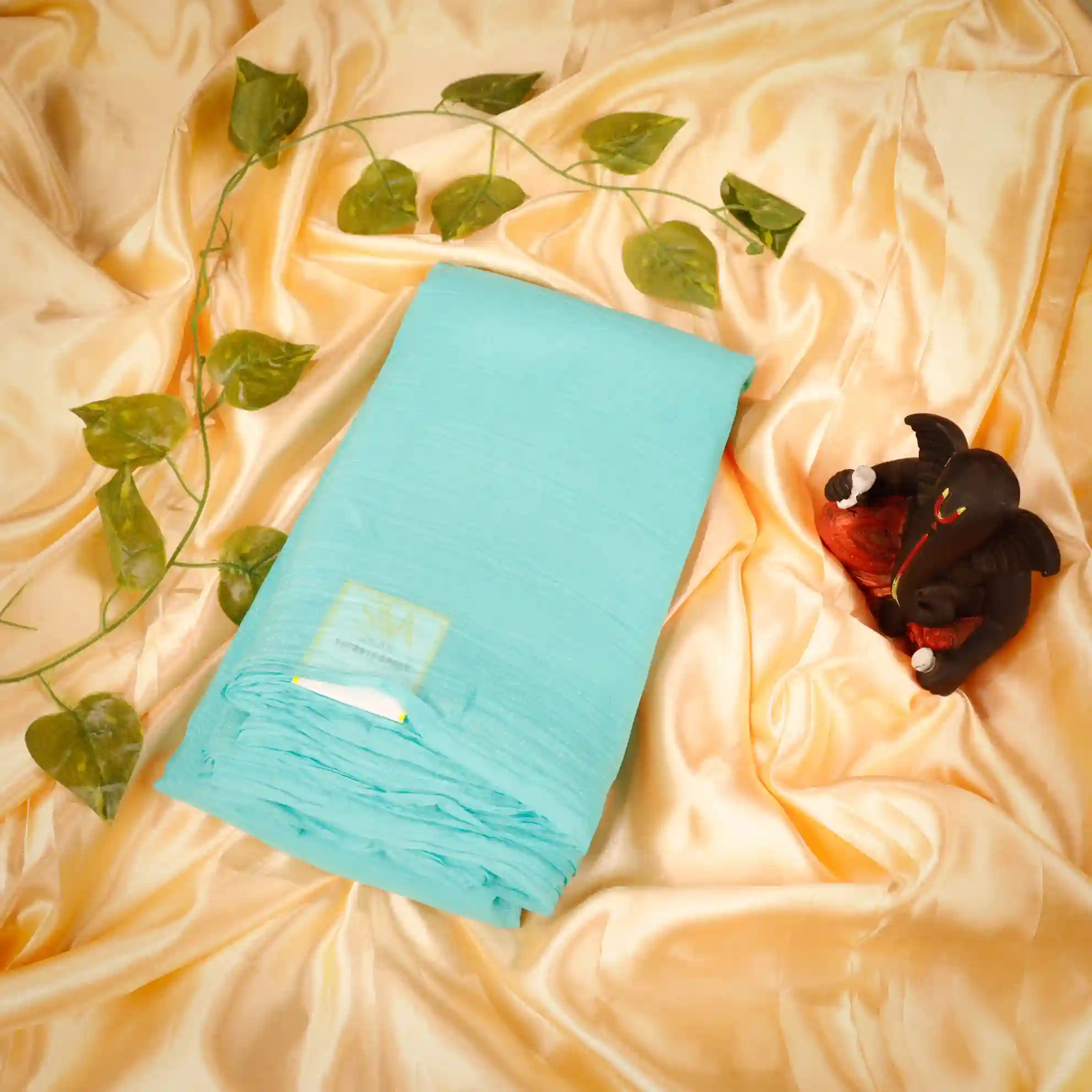 Add effortless elegance to your everyday and formal wardrobe with this Crush Georgette Plain Saree. Crafted from lightweight georgette fabric, this saree features a soft crushed texture that creates a graceful, flowy drape and ensures all-day comfort.