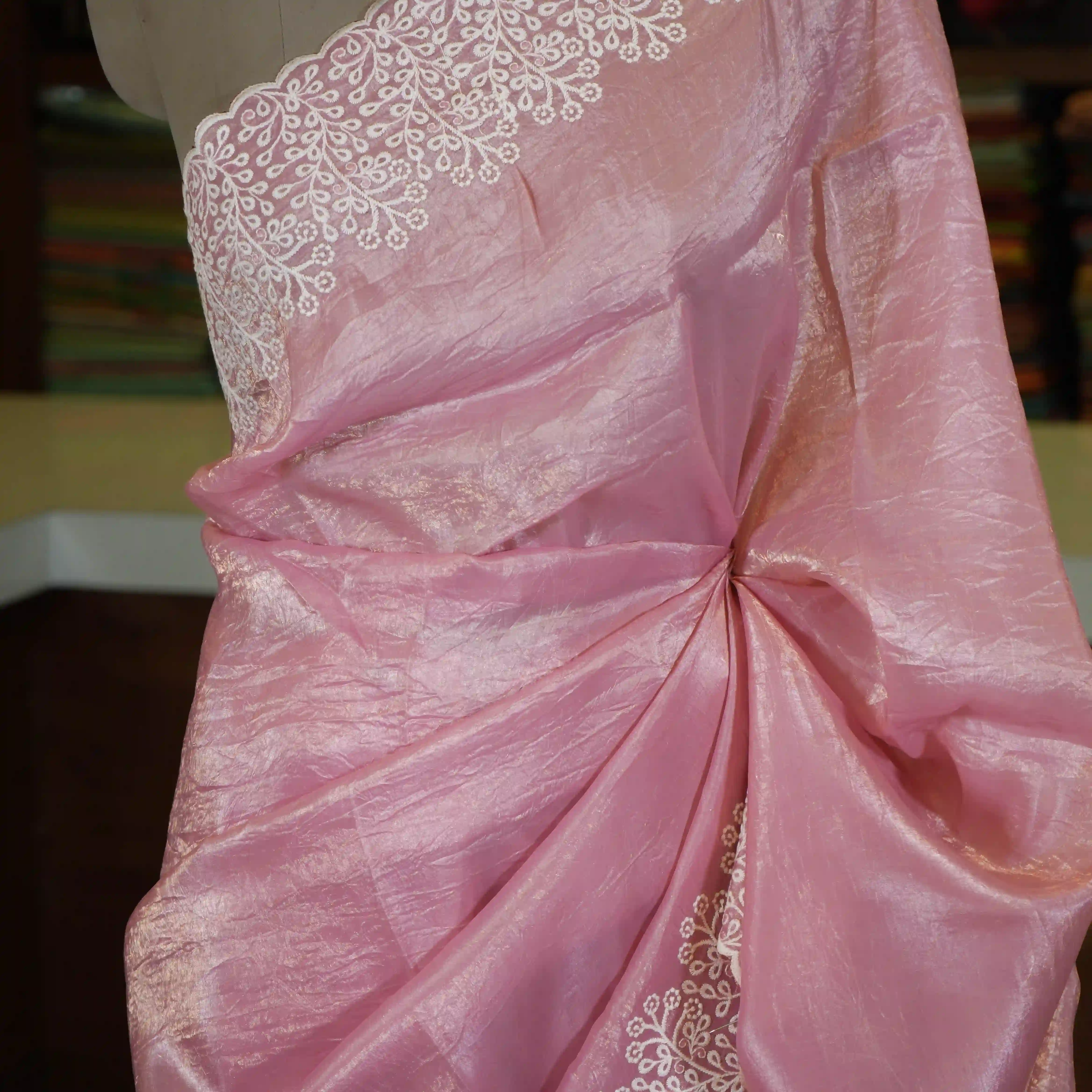Enhance your ethnic wardrobe with this elegant Light Pink Crush Organza Saree, designed to give you a soft and graceful look. Crafted from premium crush organza fabric, this saree features a stylish crinkled texture that adds a modern yet classy appeal.