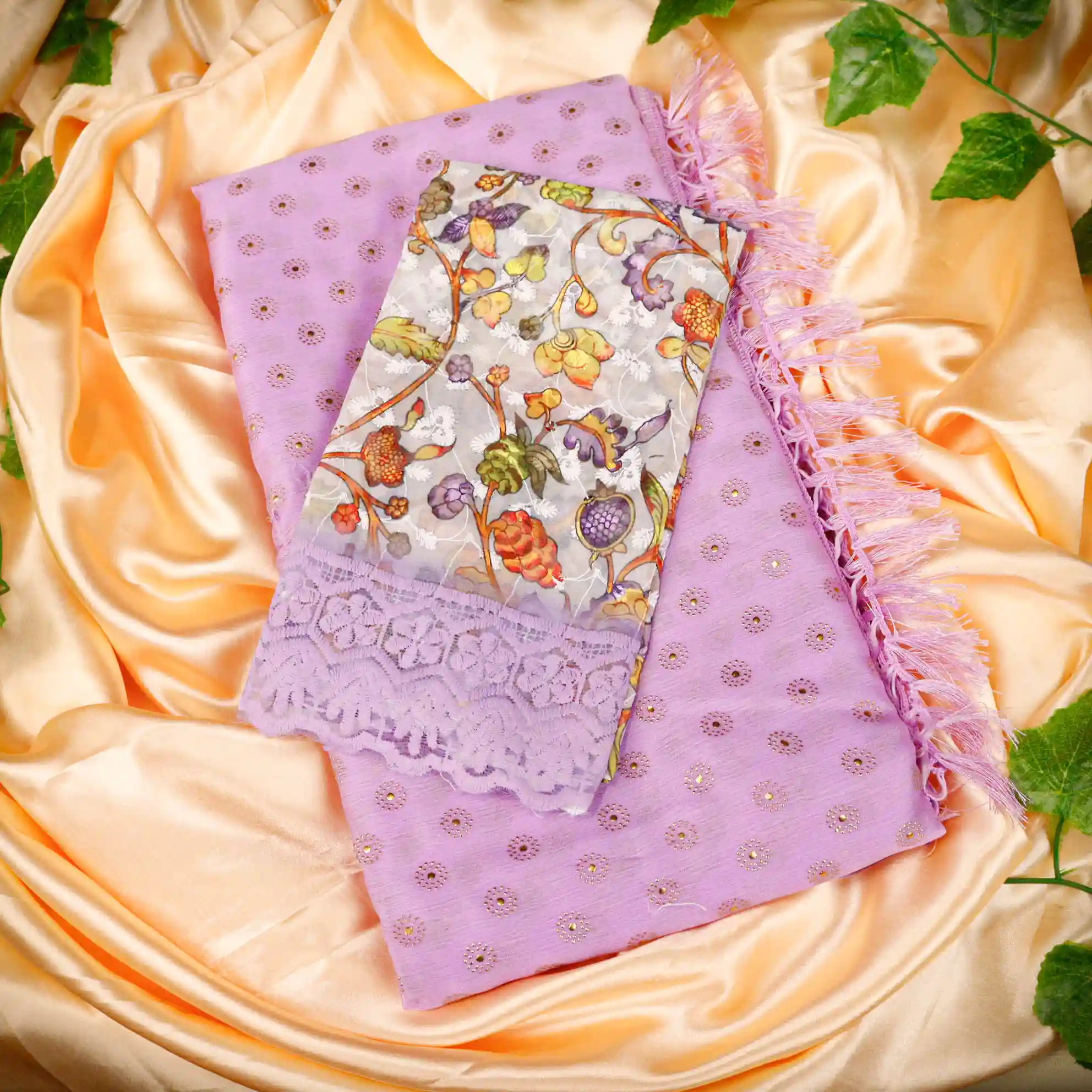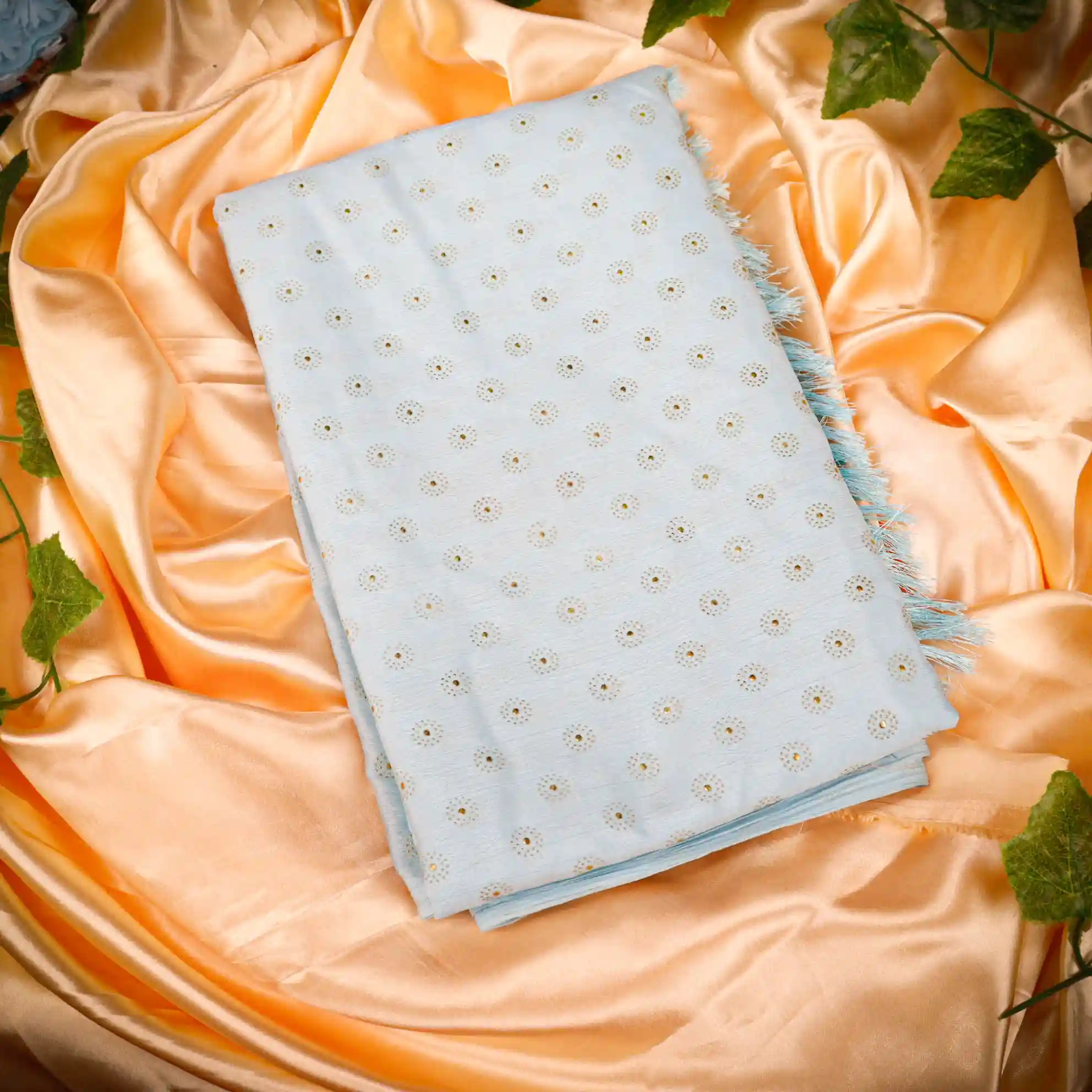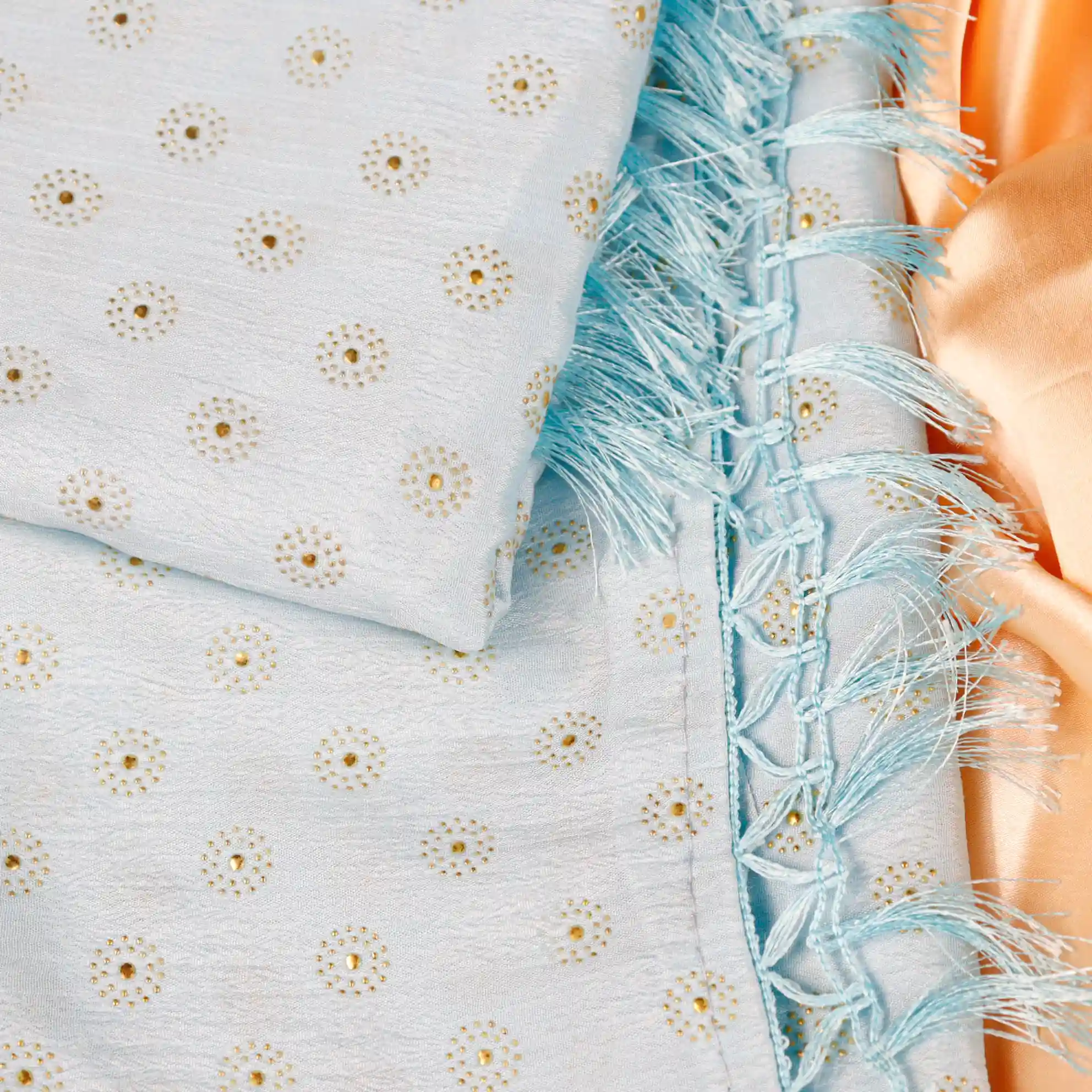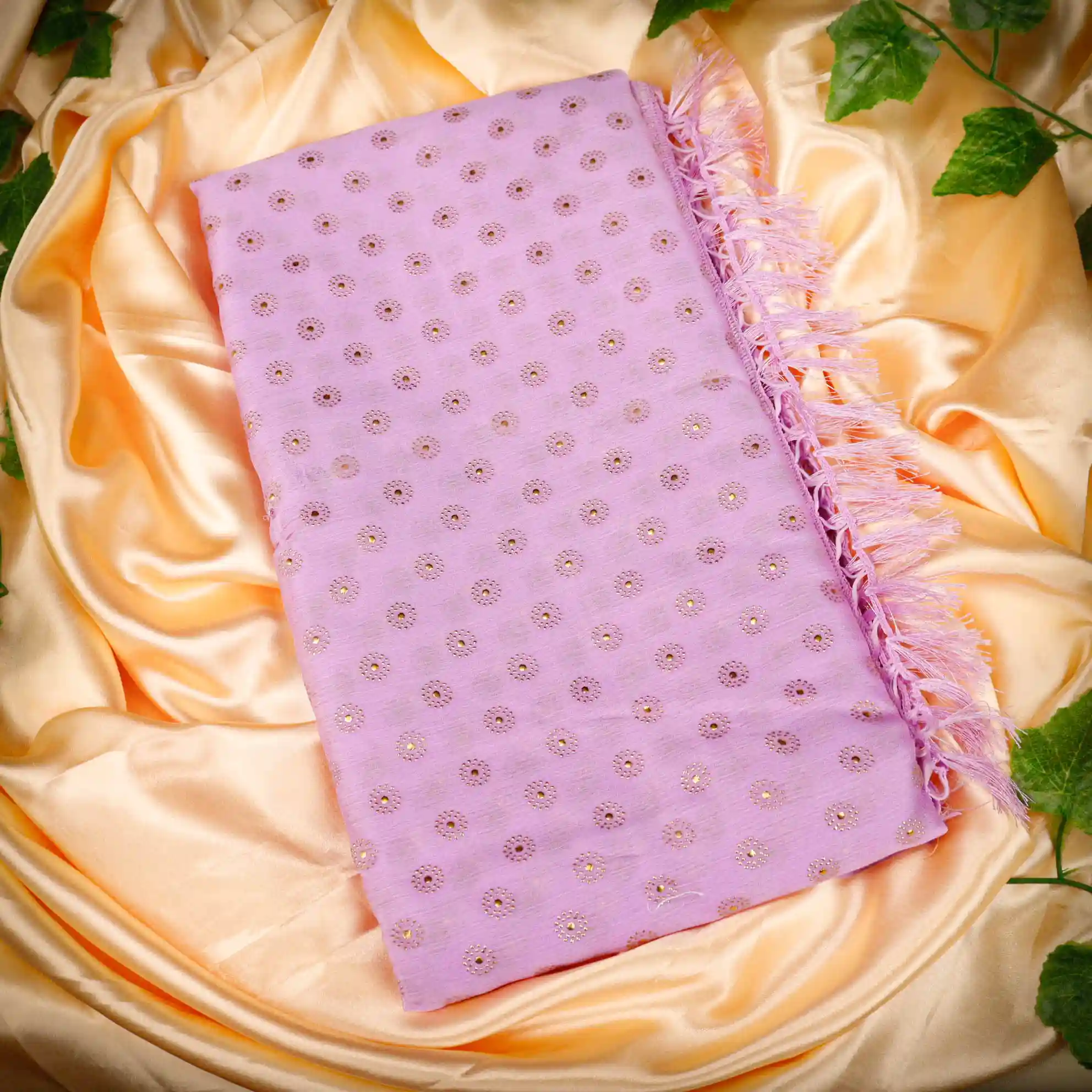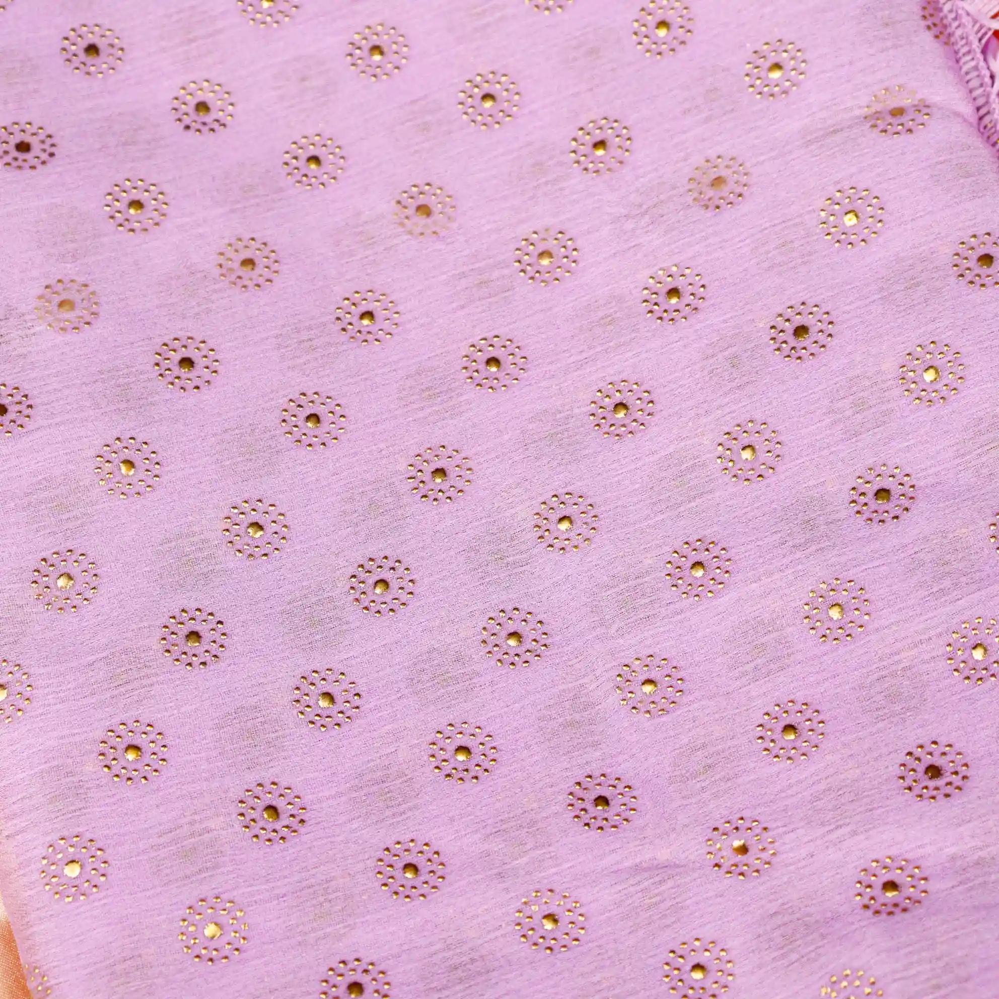 Refresh your ethnic wardrobe with this elegant Foil Butta Work Saree with Tassel Knot at the End, designed to bring effortless charm and festive elegance. Available in soothing Sky Blue and graceful Lavender colour options, this saree features delicate foil butta prints that add a subtle shimmer and refined appeal.