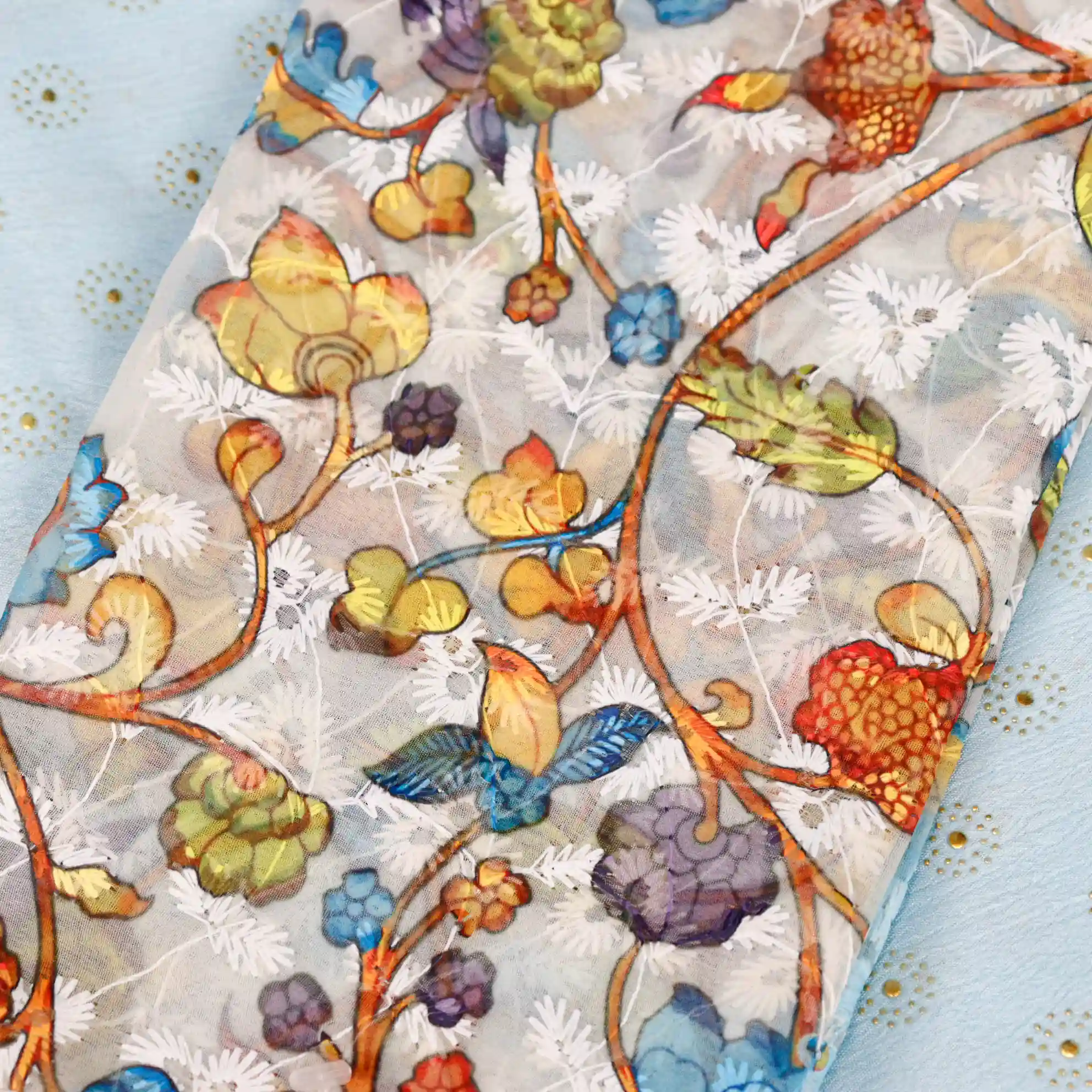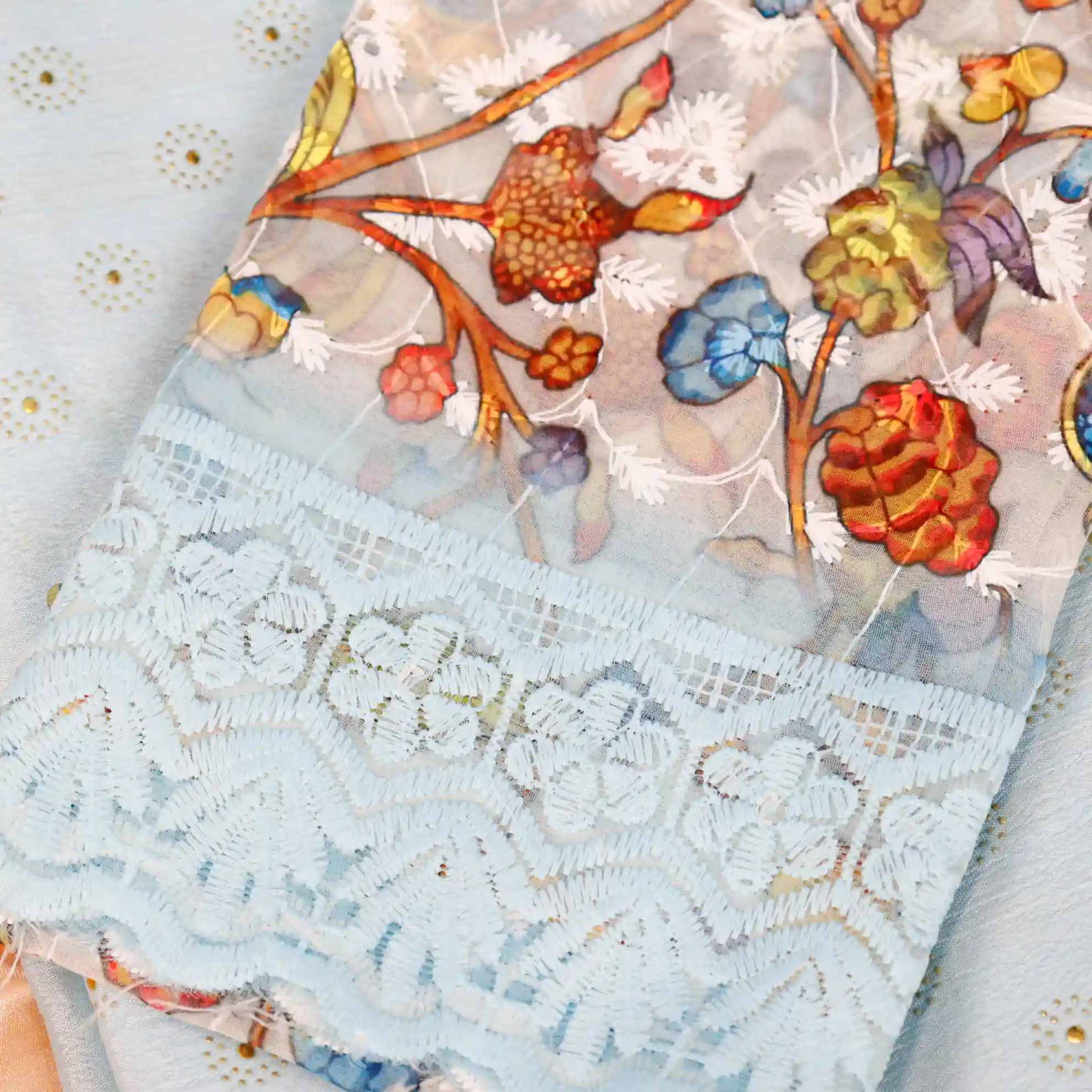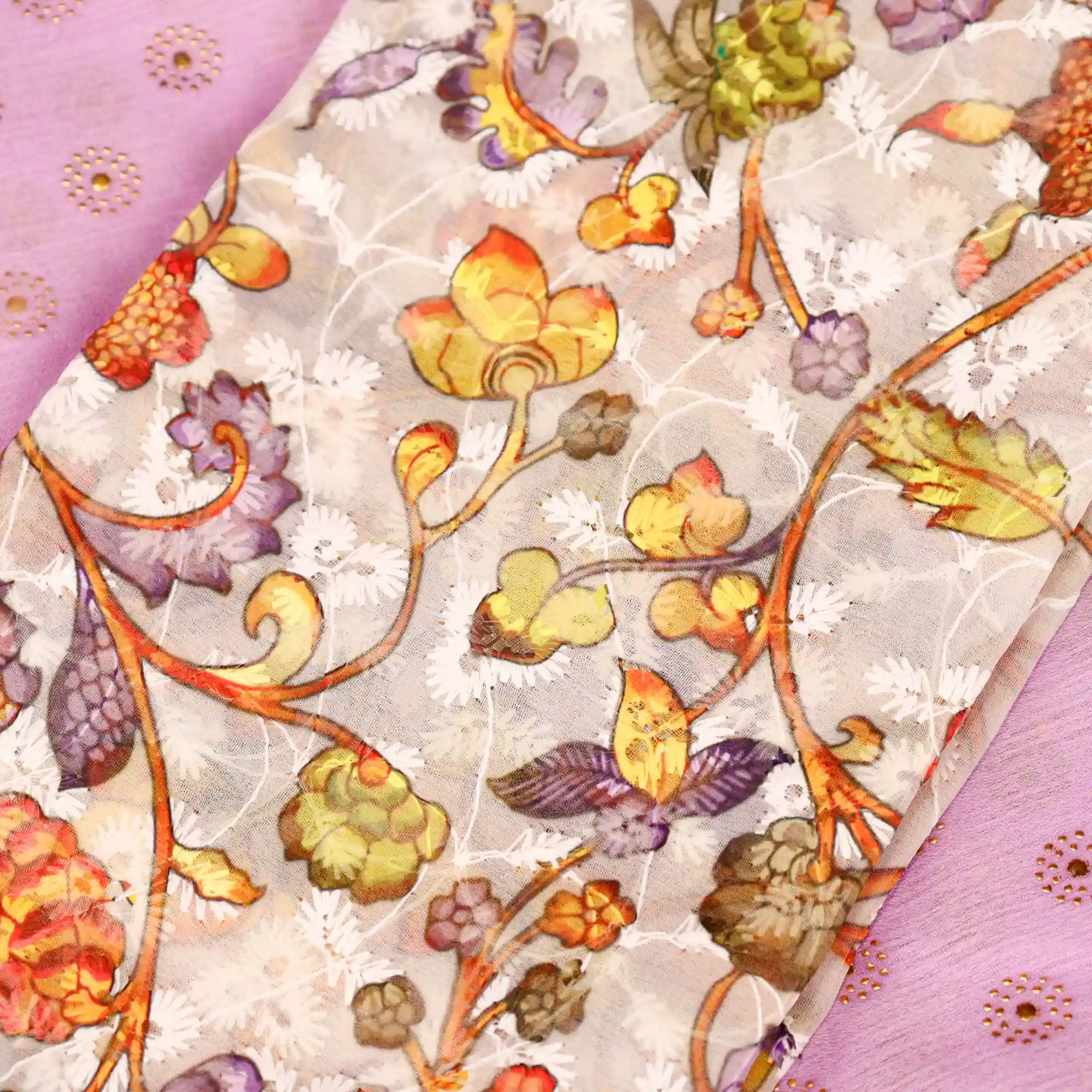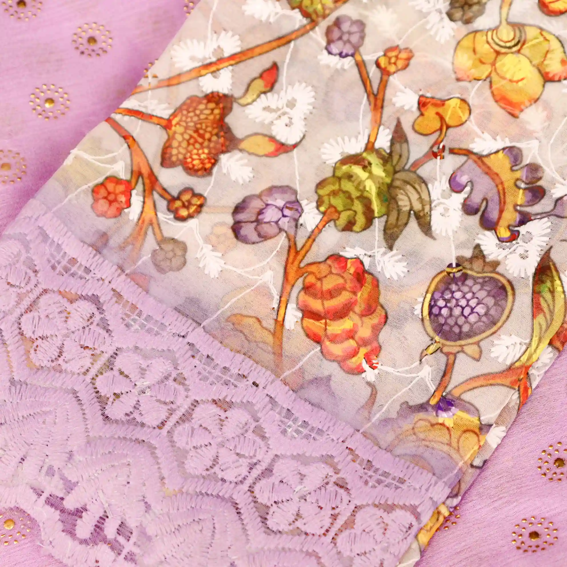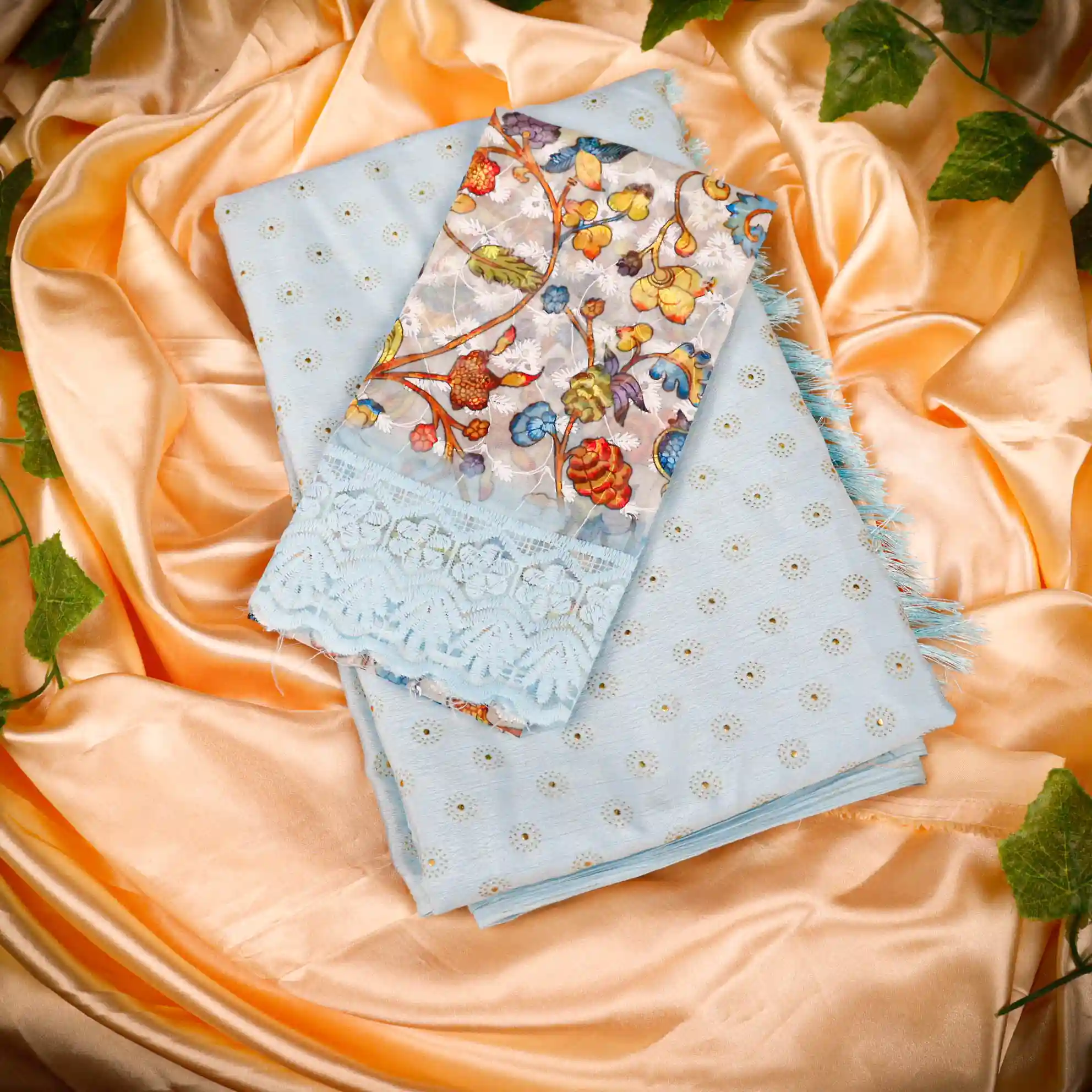 Refresh your ethnic wardrobe with this elegant Foil Butta Work Saree with Tassel Knot at the End, designed to bring effortless charm and festive elegance. Available in soothing Sky Blue and graceful Lavender colour options, this saree features delicate foil butta prints that add a subtle shimmer and refined appeal.