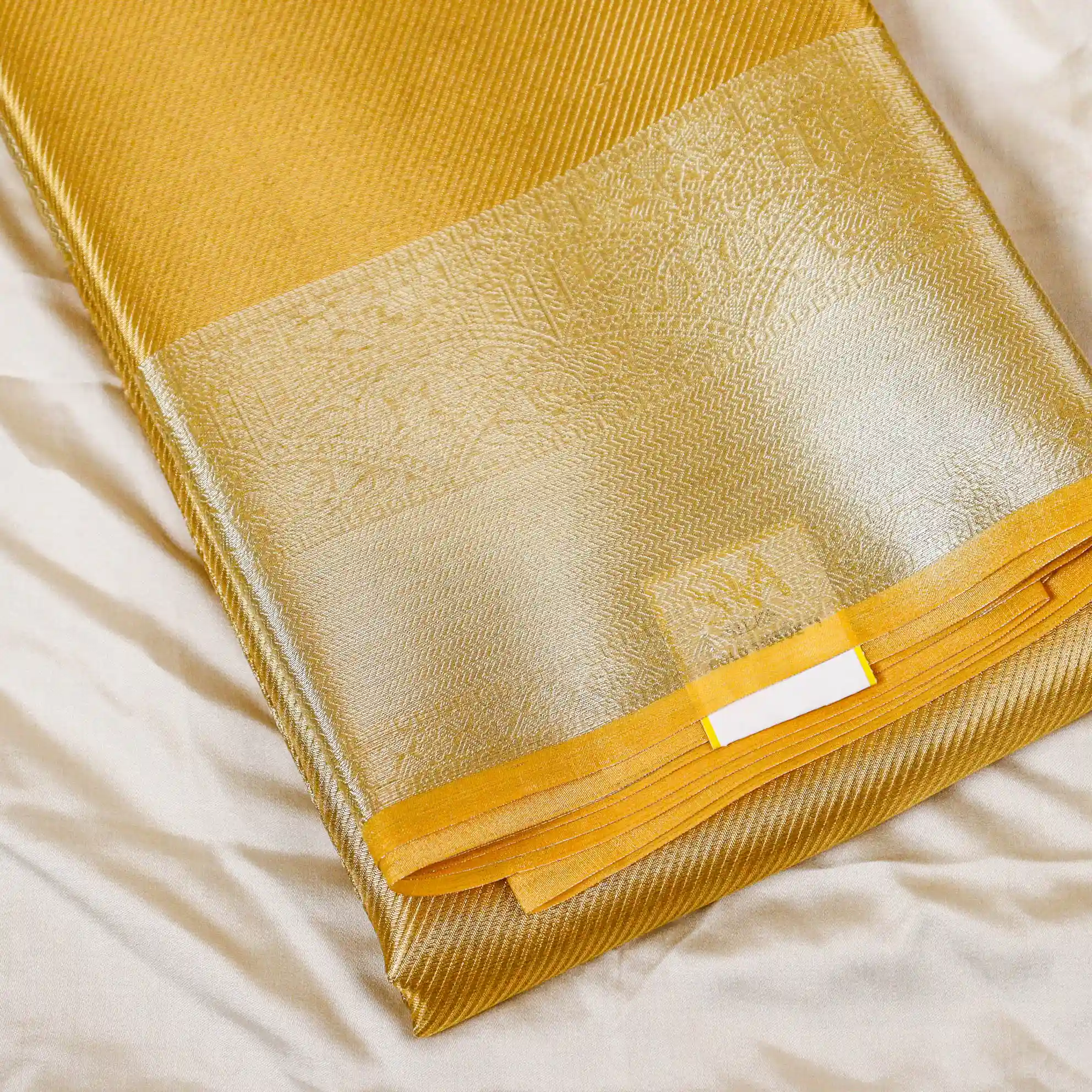 Elevate your festive wardrobe with this exquisite Gold Tissue Saree, crafted to deliver a luminous and graceful look. Woven with fine Tissue Fabric, the saree features a subtle metallic sheen that reflects light beautifully, creating an elegant drape with a lightweight feel. Its Smooth Texture ensures comfort while maintaining a rich and regal appearance. Perfect for weddings, festive celebrations, and traditional gatherings, this saree blends classic charm with contemporary sophistication, making it a timeless addition to your ethnic collection.