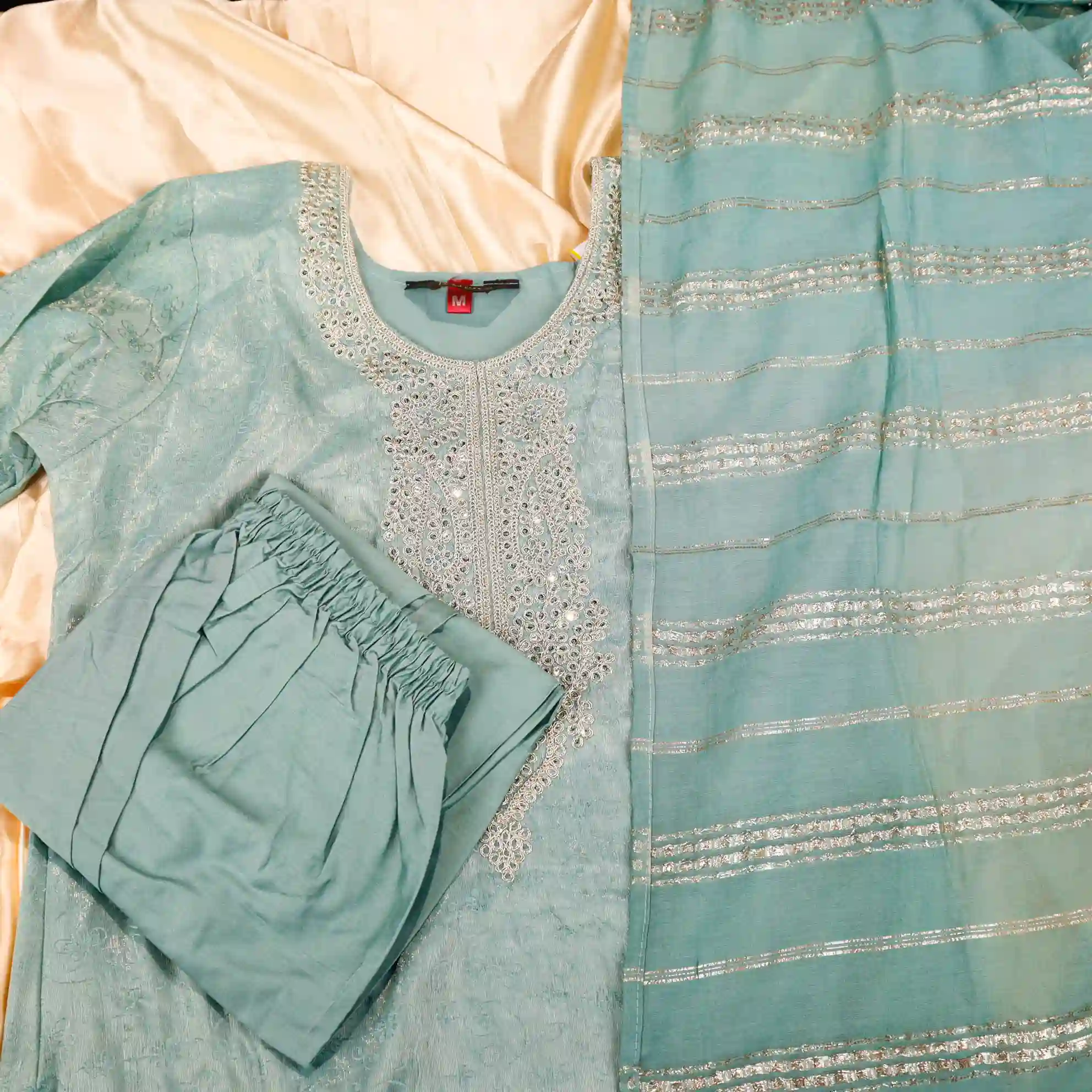 Add a touch of elegance to your ethnic wardrobe with this stylish Jacquard Kurti Set. Crafted from premium jacquard fabric, this outfit features intricate woven patterns that give it a rich and luxurious appearance. The fabric is soft, durable, and comfortable, making it suitable for both festive occasions and special gatherings. Designed to offer a flattering silhouette, this kurti set blends traditional charm with modern sophistication. Available in M, L, XL, and XXL sizes, it ensures a perfect fit and effortless grace for every woman.
