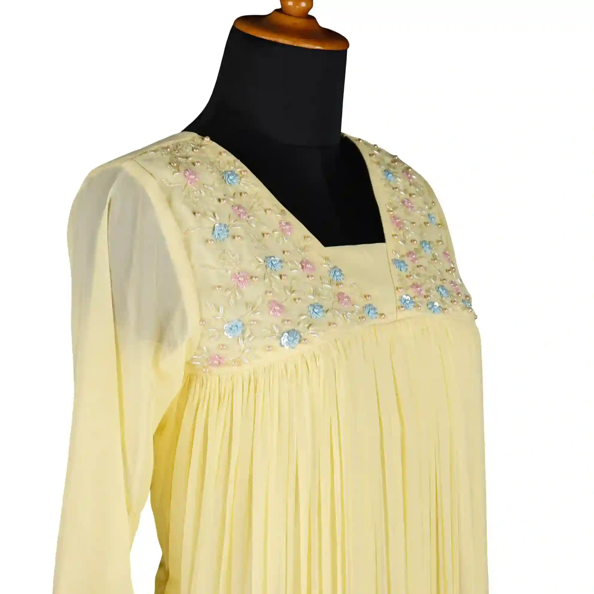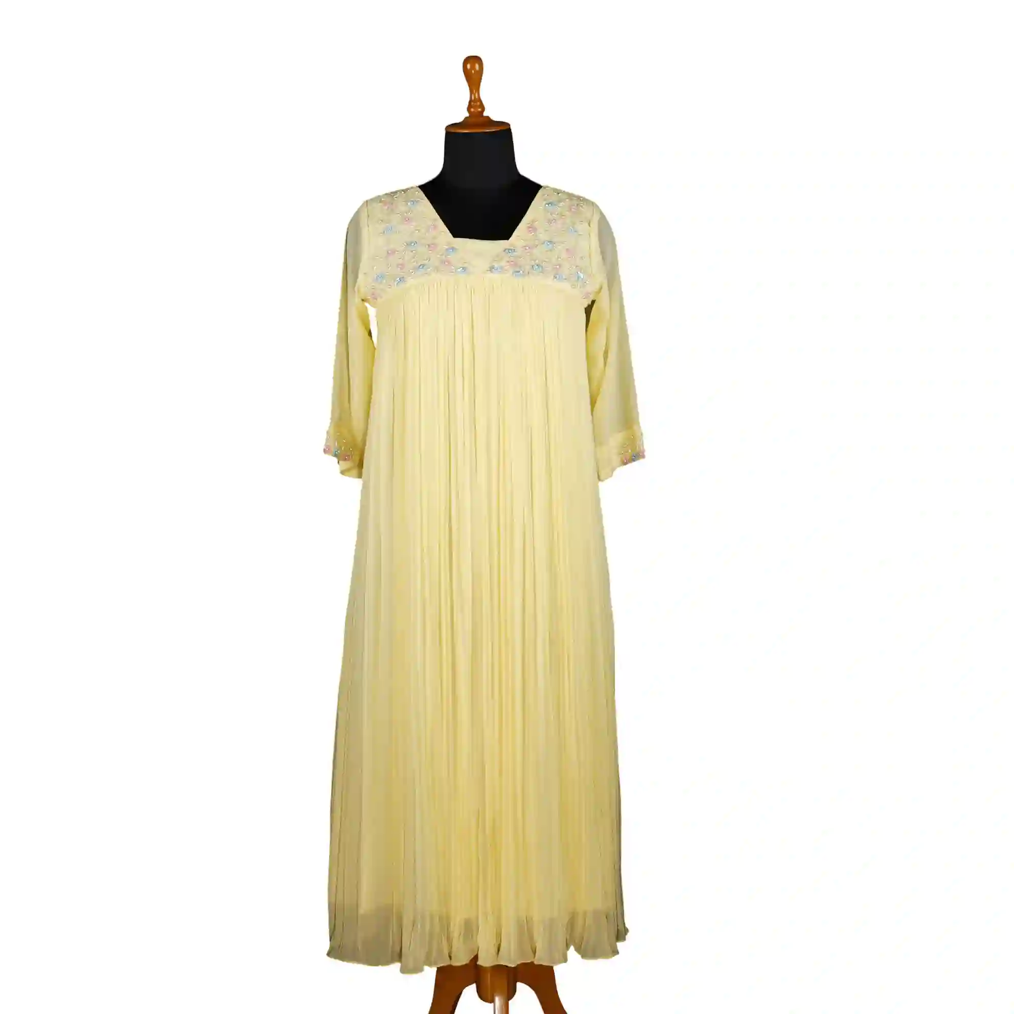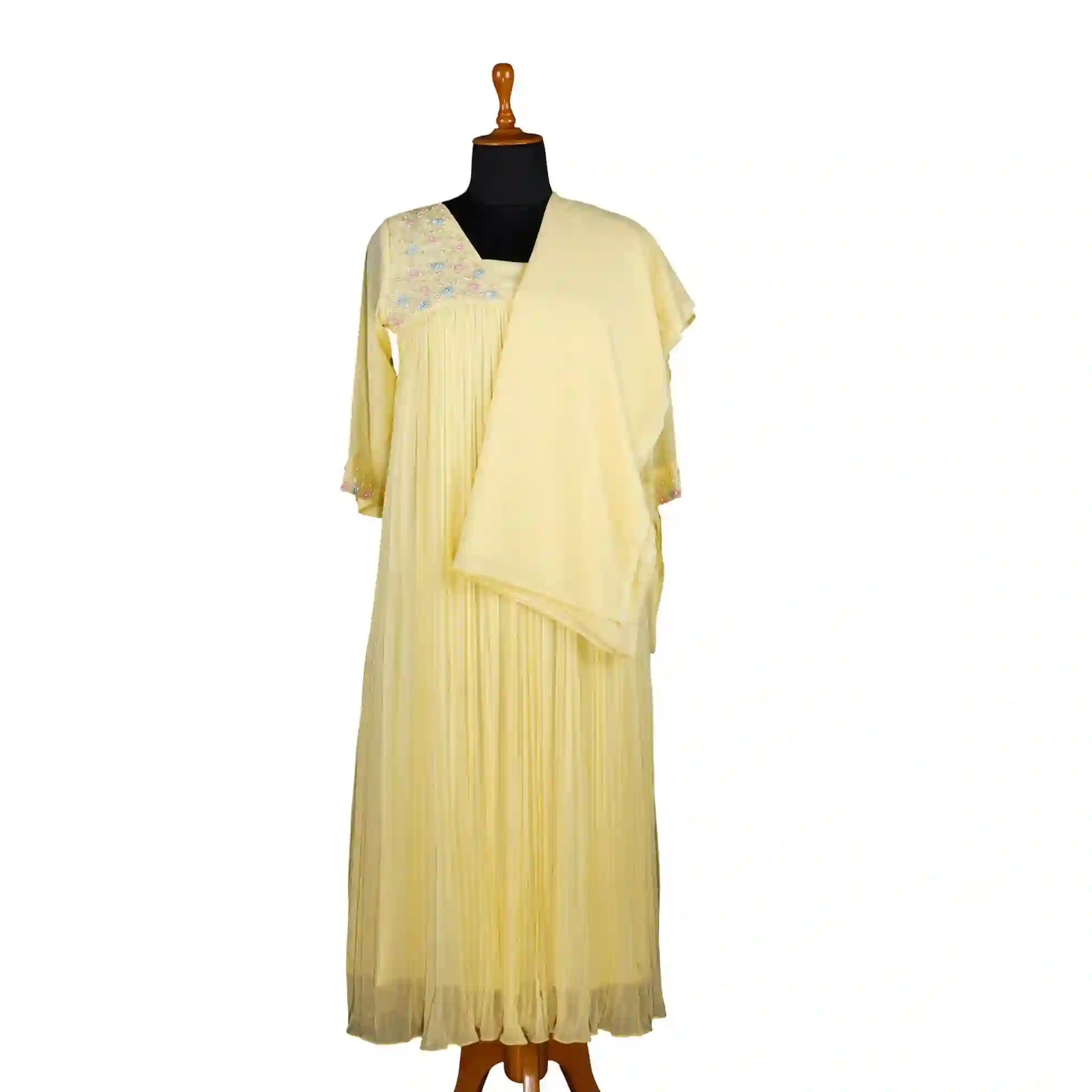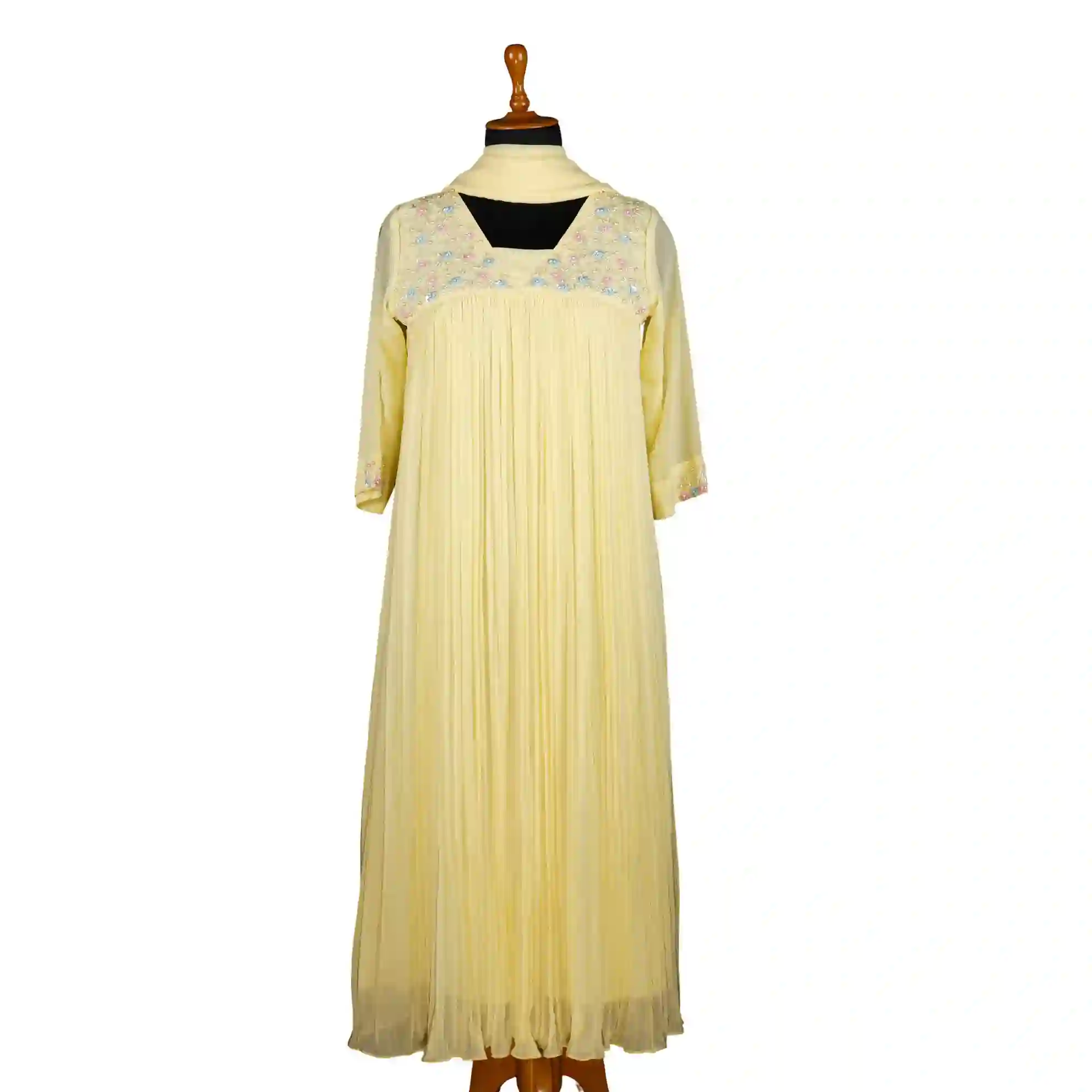 Brighten up your ethnic wardrobe with this stunning Yellow A-Line Pleated Kurti Set, designed to offer elegance with a vibrant touch. Crafted in a flattering A-line silhouette, this kurti features soft pleats that create a graceful and flowy look.
