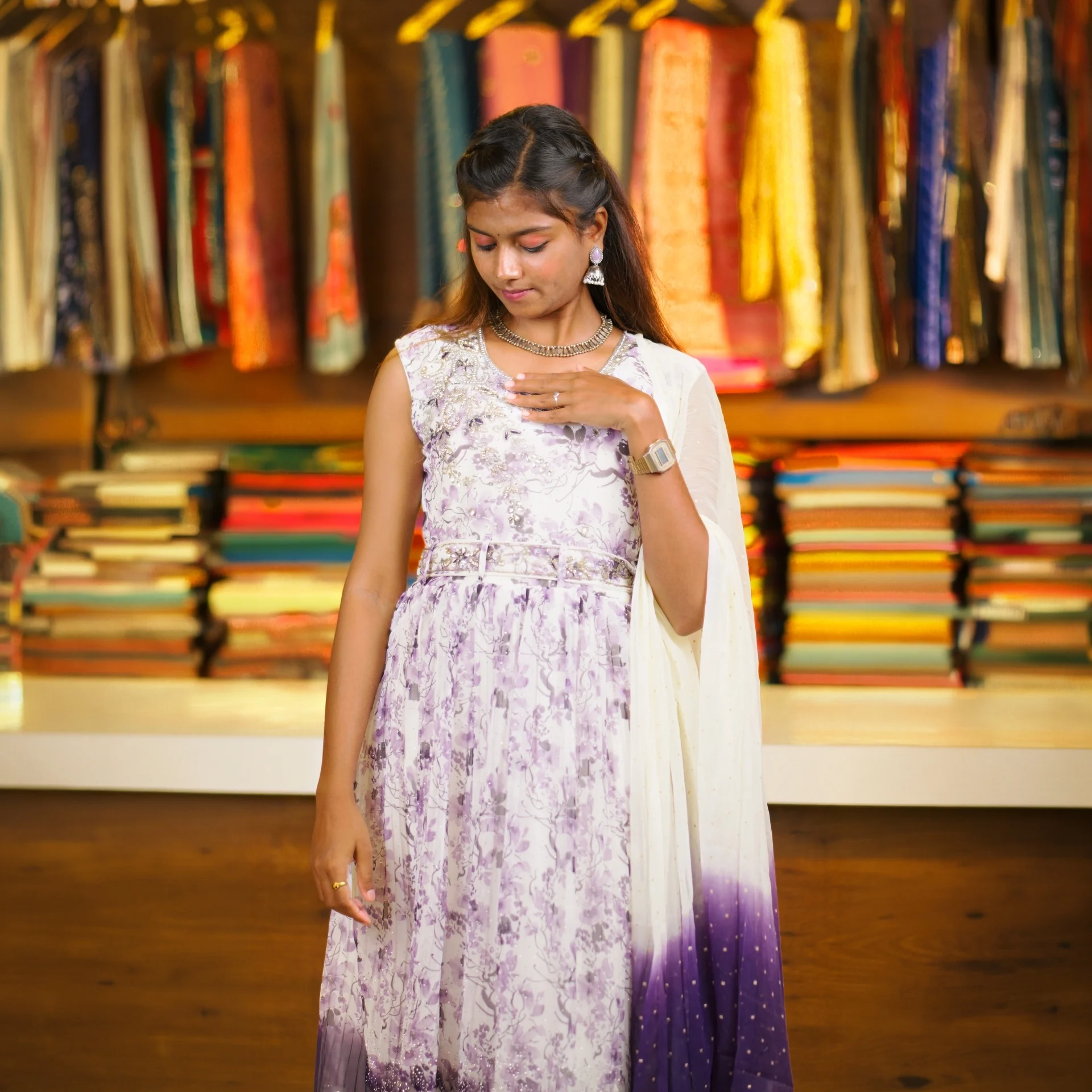 Paired with a beautifully designed ombre shaded dupatta, this outfit adds a unique and stylish element to your overall appearance. The lightweight fabric ensures comfort while maintaining a rich and festive feel.