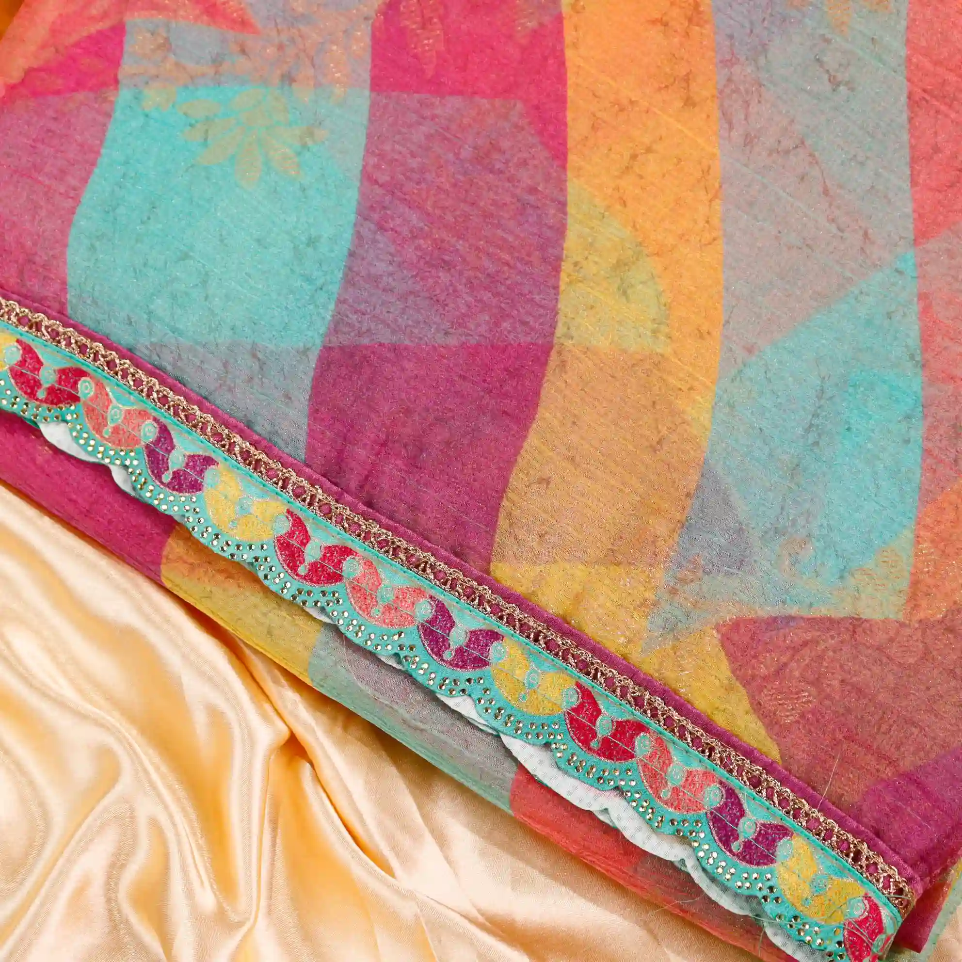 Make a bold yet elegant style statement with this stunning Ocean Crush Multicolour Organza Saree, inspired by the vibrant movement of ocean waves. Crafted from lightweight crush organza fabric, this saree offers a beautiful flow and is easy to drape, ensuring all-day comfort with a fashionable edge.
