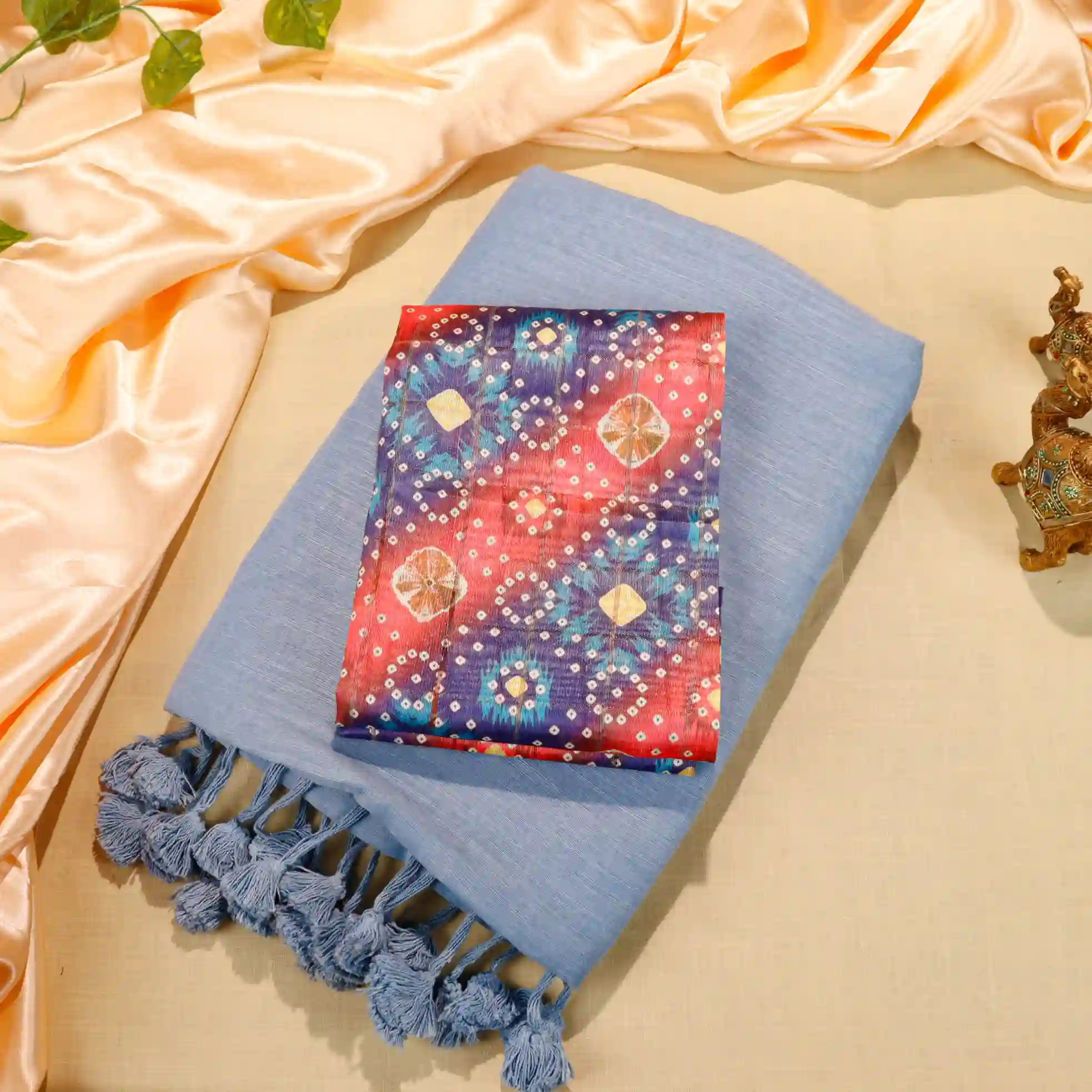 Upgrade your everyday ethnic style with this graceful Plain Cotton Saree, designed for comfort and effortless elegance. Crafted from soft, breathable cotton fabric, this saree offers a lightweight drape ideal for daily wear, office use, and casual outings. The minimal plain body is beautifully complemented by a 0.80 metre tussar printed blouse, adding a touch of contrast and sophistication. Simple, classy, and versatile—this saree is a must-have for a timeless wardrobe.