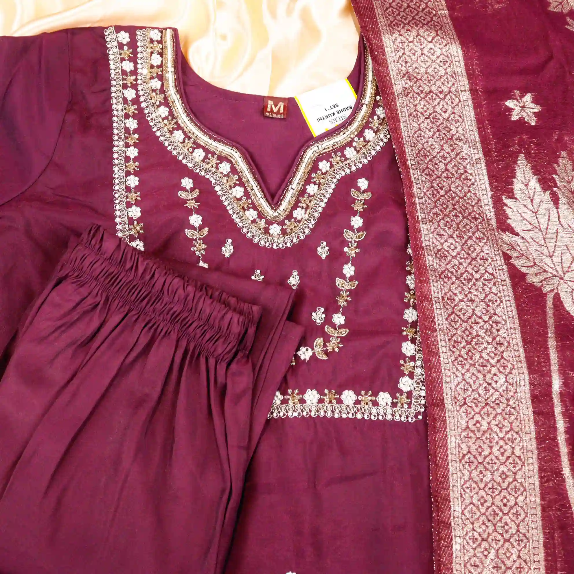 Add elegance and shine to your ethnic wardrobe with this beautiful Soft Tissue Satin Kurti Set. Crafted from premium soft tissue satin fabric, this outfit offers a smooth texture with a subtle glossy finish that enhances your overall look. The lightweight material ensures comfort while maintaining a rich and festive appearance. Perfect for parties, festive occasions, family functions, and special gatherings, this kurti set gives you a graceful and stylish presence. Available in M, L, XL, and XXL sizes, it provides a flattering fit for different body types while keeping you comfortable throughout the day.