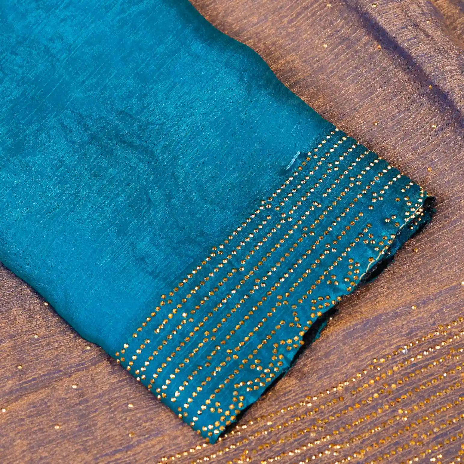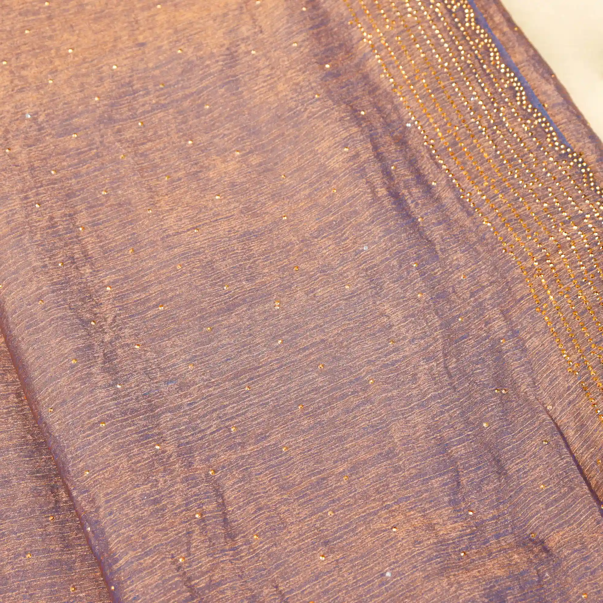 The highlight of this saree is the intricate stone work detailing arranged in four elegant layers, adding a subtle shimmer and graceful dimension without being overpowering. The rich onion pink colour enhances its festive appeal, making it an ideal choice for weddings, receptions, festive celebrations, parties, and special occasions.