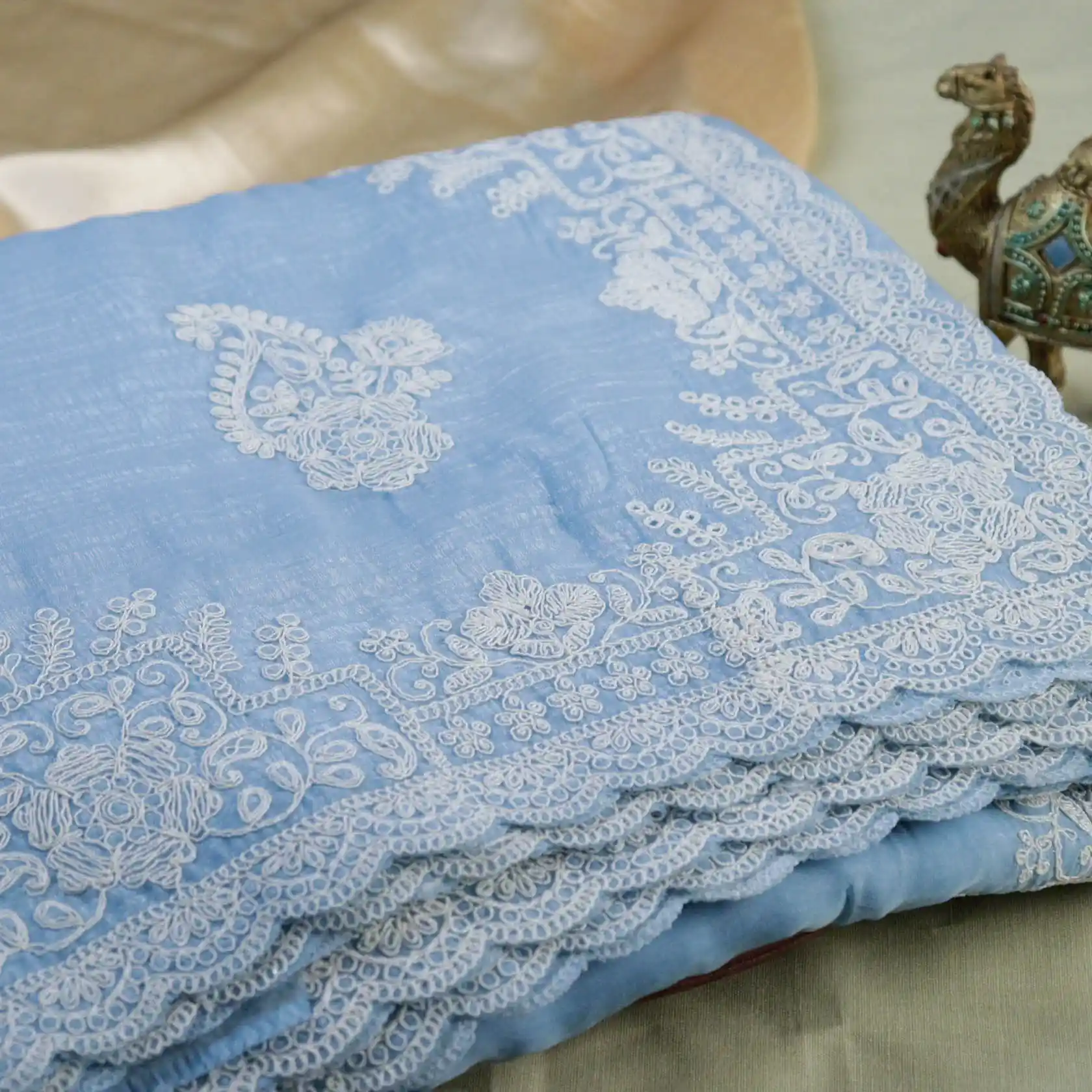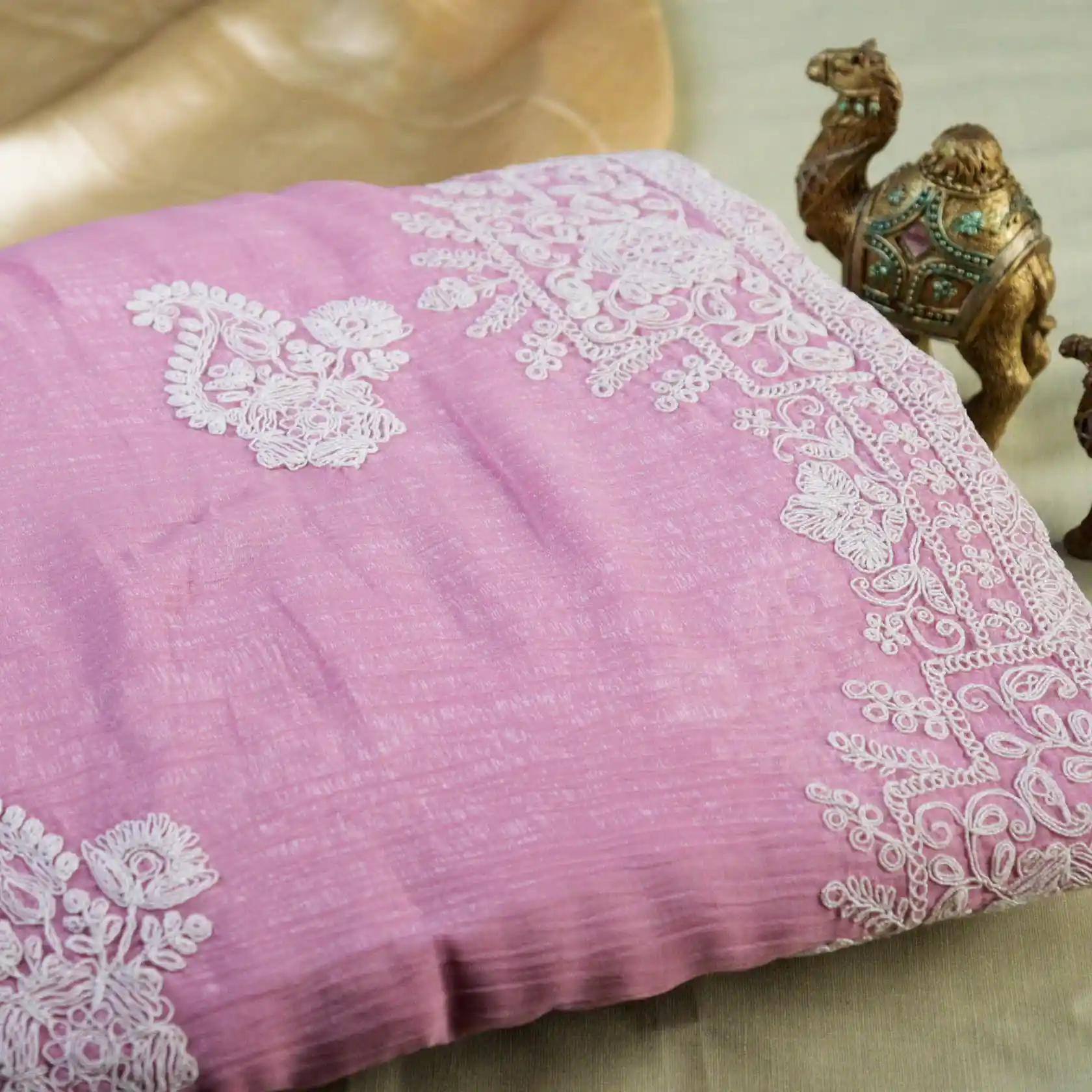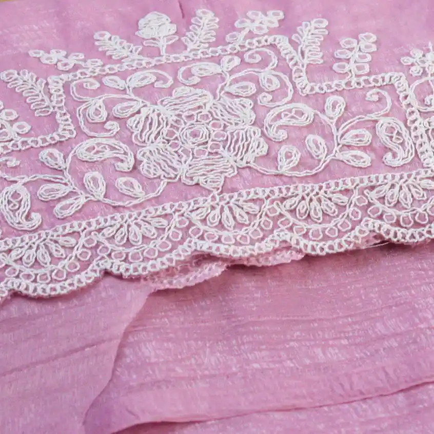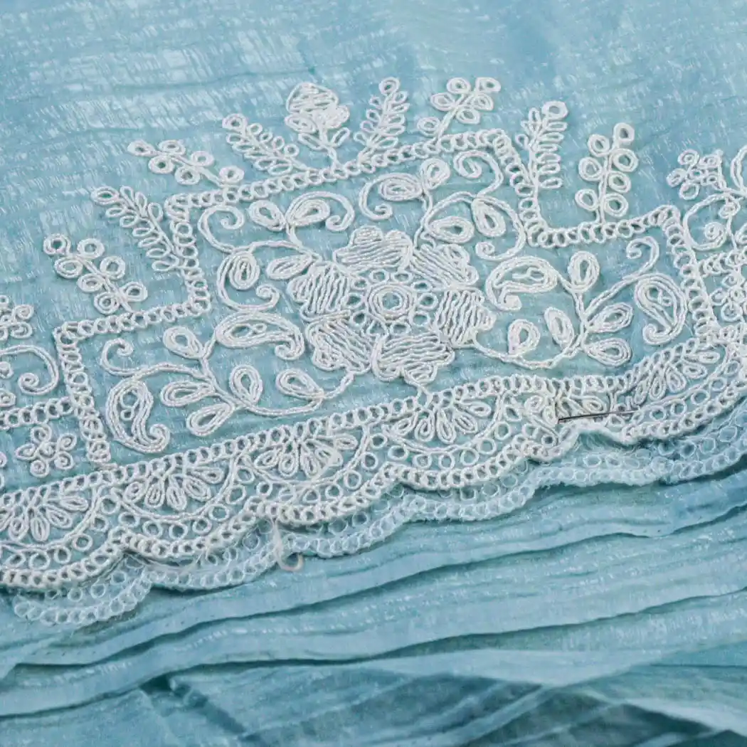 Elevate Your Ethnic Style With This Elegant Crush Embroidery Organza Saree, Crafted From Lightweight Crush Organza Fabric With a Graceful Drape and Subtle Sheen. The Saree Features Delicate Floral Embroidery With Intricate Thread Work Along the Borders and Pallu, Adding a Refined Feminine Charm.