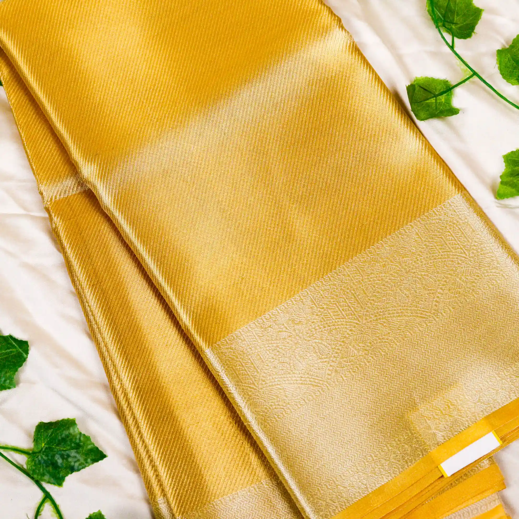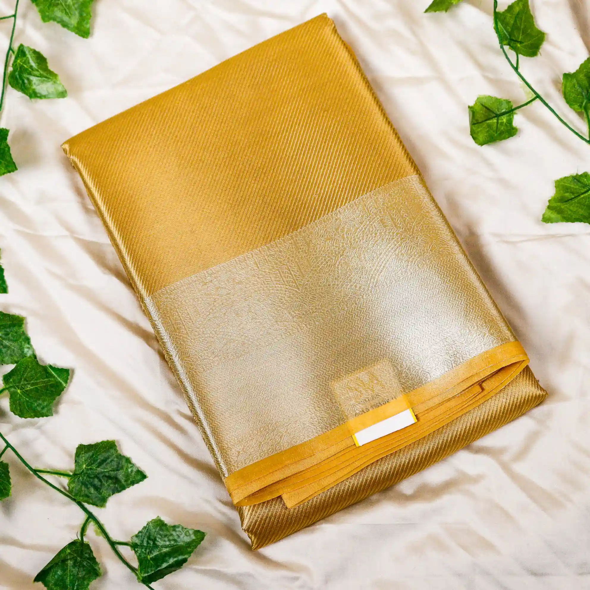Elevate your festive wardrobe with this exquisite Gold Tissue Saree, crafted to deliver a luminous and graceful look. Woven with fine Tissue Fabric, the saree features a subtle metallic sheen that reflects light beautifully, creating an elegant drape with a lightweight feel. Its Smooth Texture ensures comfort while maintaining a rich and regal appearance. Perfect for weddings, festive celebrations, and traditional gatherings, this saree blends classic charm with contemporary sophistication, making it a timeless addition to your ethnic collection.