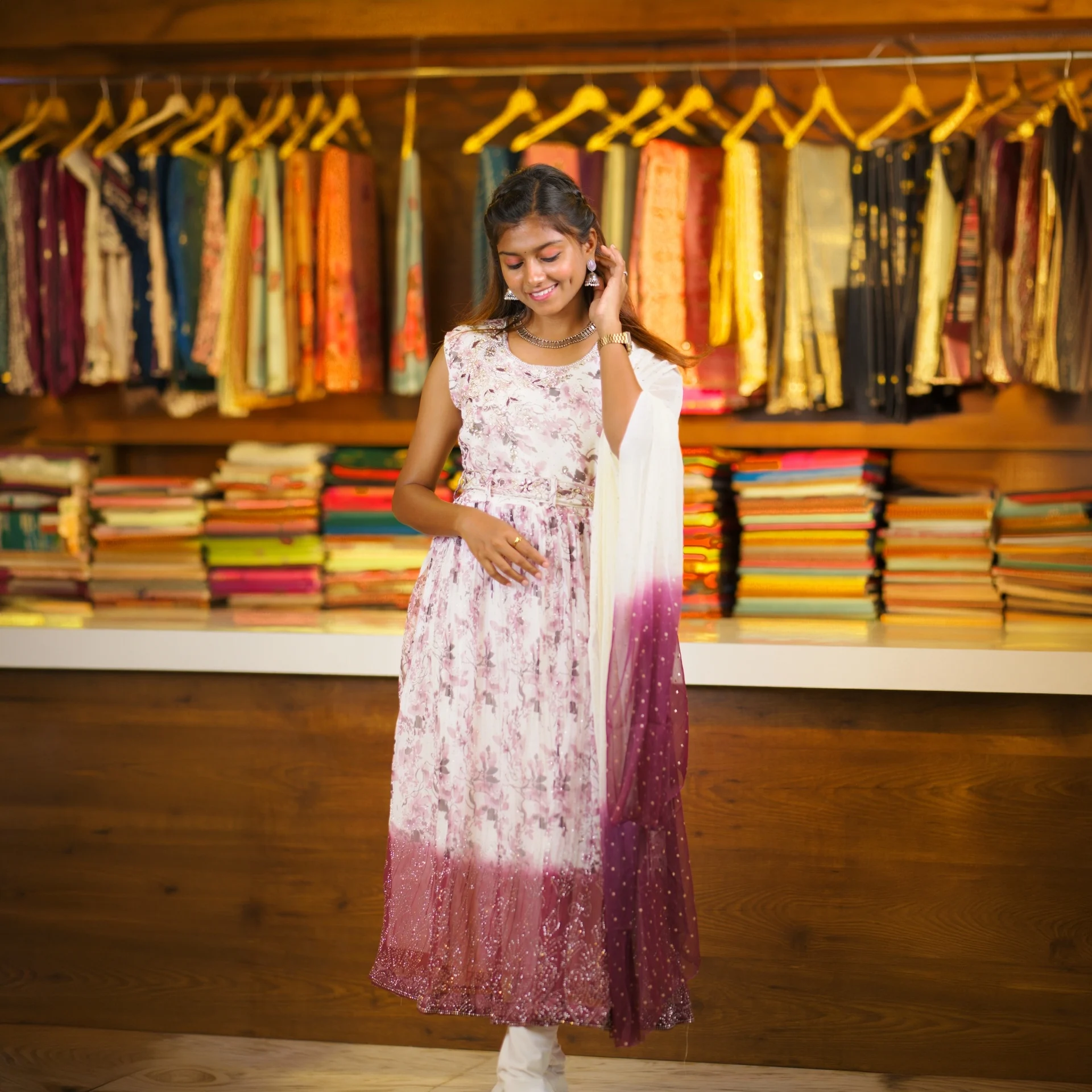 Paired with a beautifully designed ombre shaded dupatta, this outfit adds a unique and stylish element to your overall appearance. The lightweight fabric ensures comfort while maintaining a rich and festive feel.