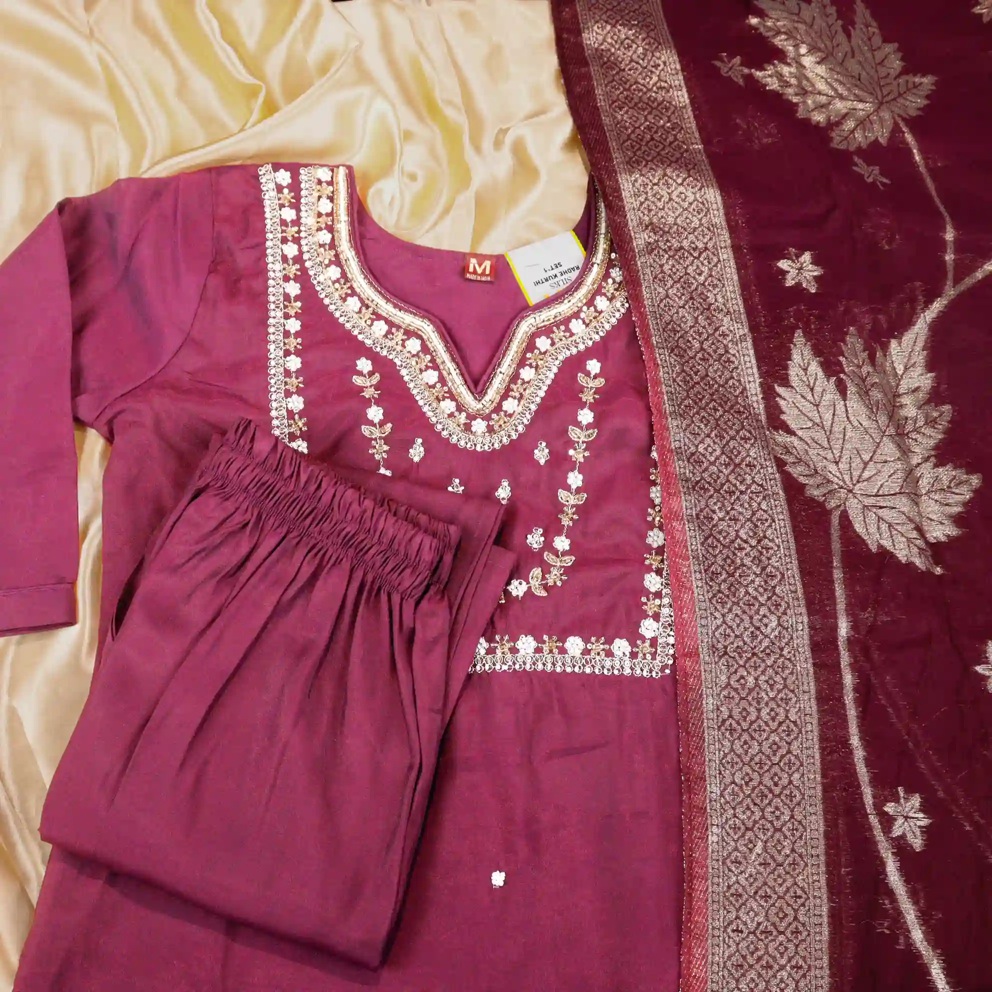 Add elegance and shine to your ethnic wardrobe with this beautiful Soft Tissue Satin Kurti Set. Crafted from premium soft tissue satin fabric, this outfit offers a smooth texture with a subtle glossy finish that enhances your overall look. The lightweight material ensures comfort while maintaining a rich and festive appearance. Perfect for parties, festive occasions, family functions, and special gatherings, this kurti set gives you a graceful and stylish presence. Available in M, L, XL, and XXL sizes, it provides a flattering fit for different body types while keeping you comfortable throughout the day.